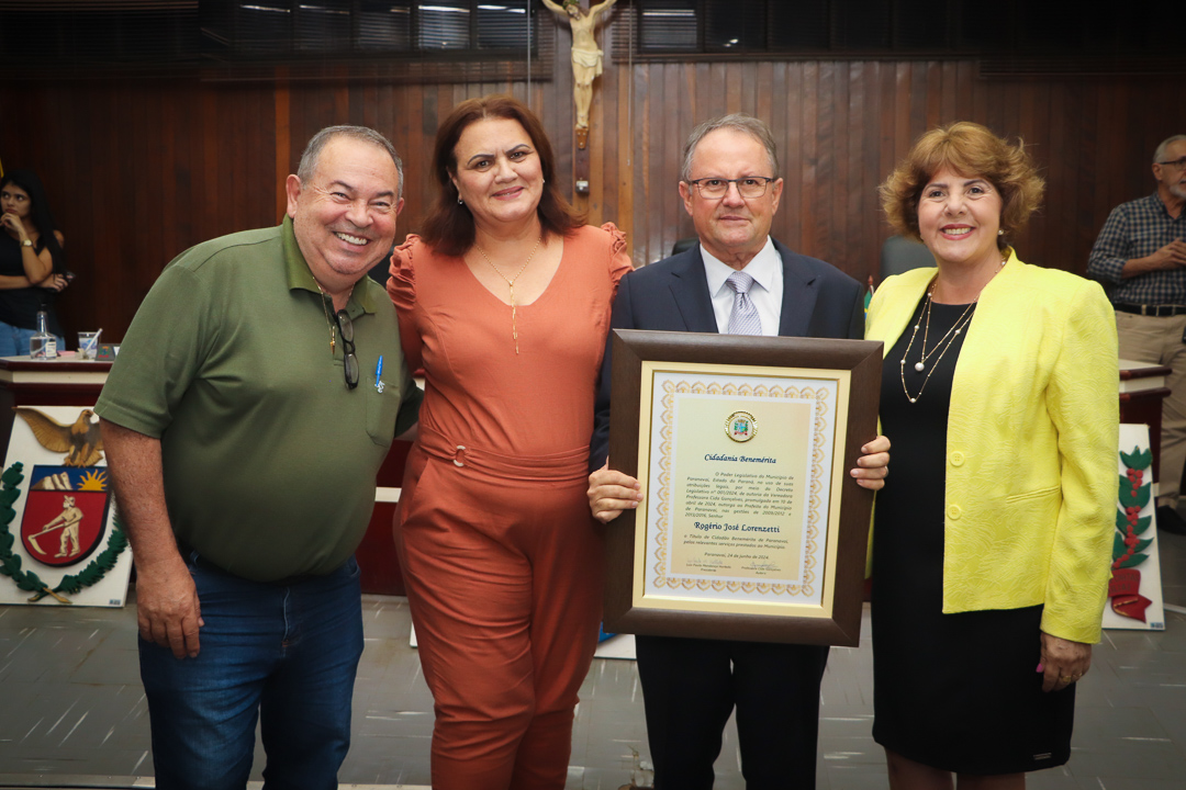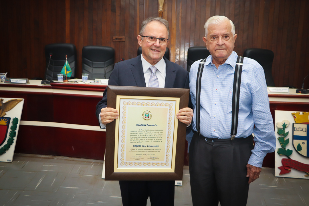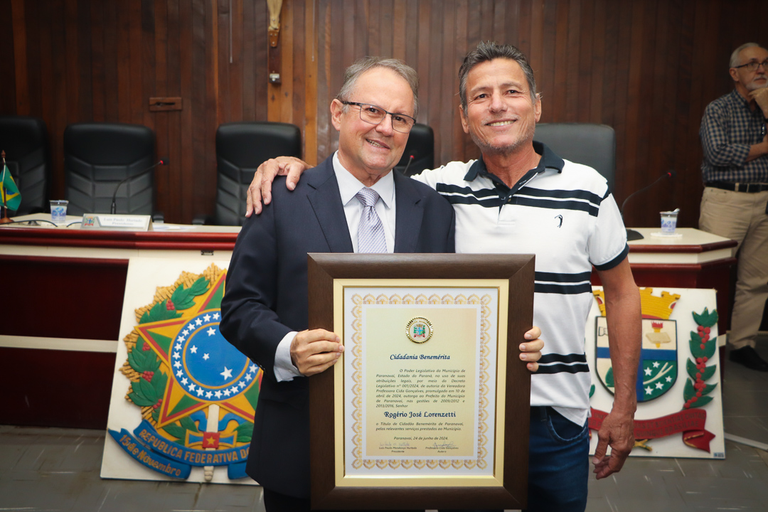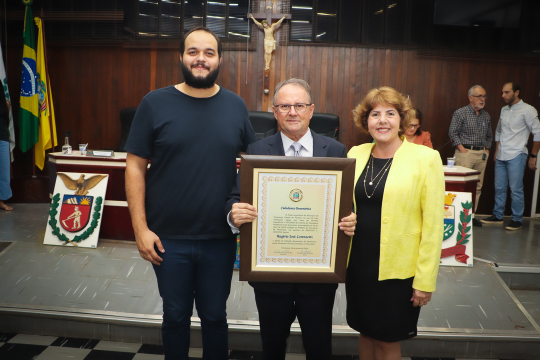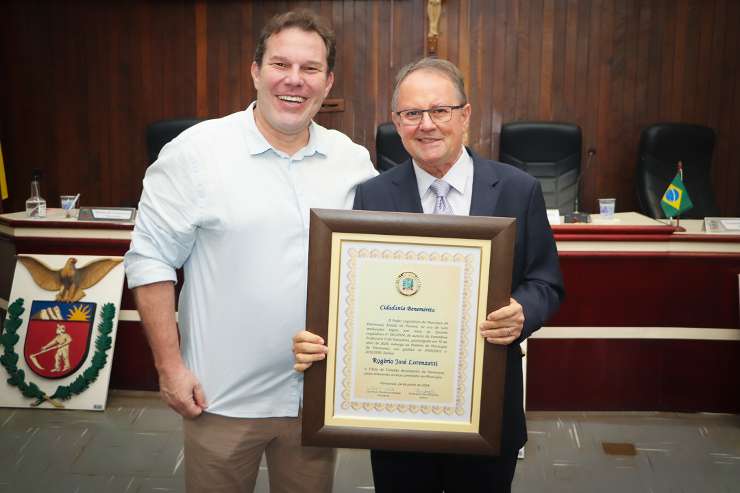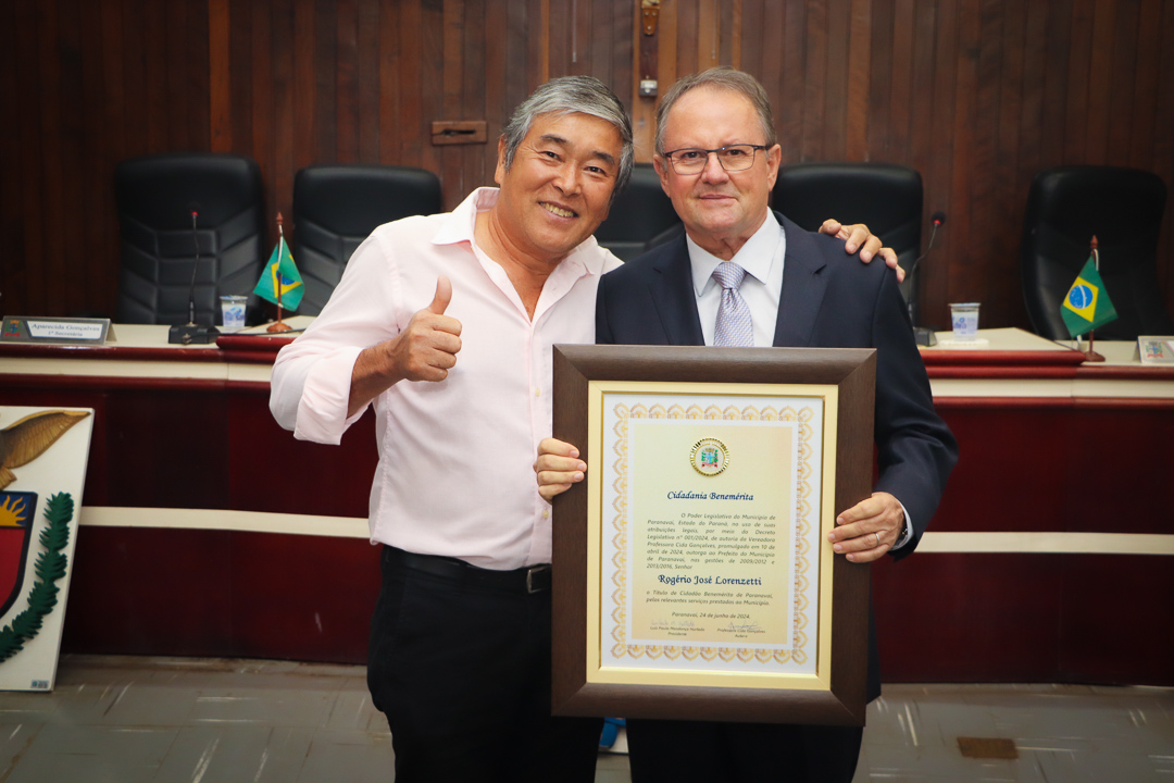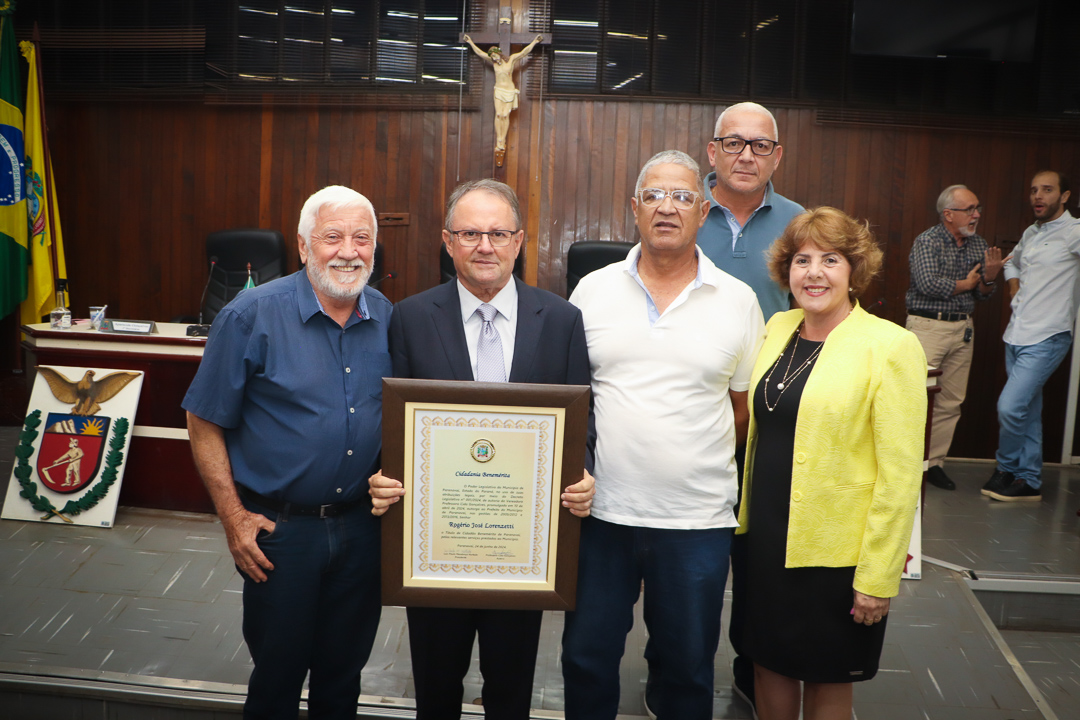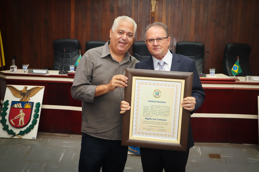 Em uma cerimônia marcada pela emoção e reconhecimento, a Câmara Municipal de Paranavaí concedeu o título de Cidadão Benemérito ao ex-prefeito Rogério José Lorenzetti. O evento, realizado no plenário da Casa de Leis, reuniu amigos, familiares, colegas de trajetória política e diversas autoridades locais e regionais.