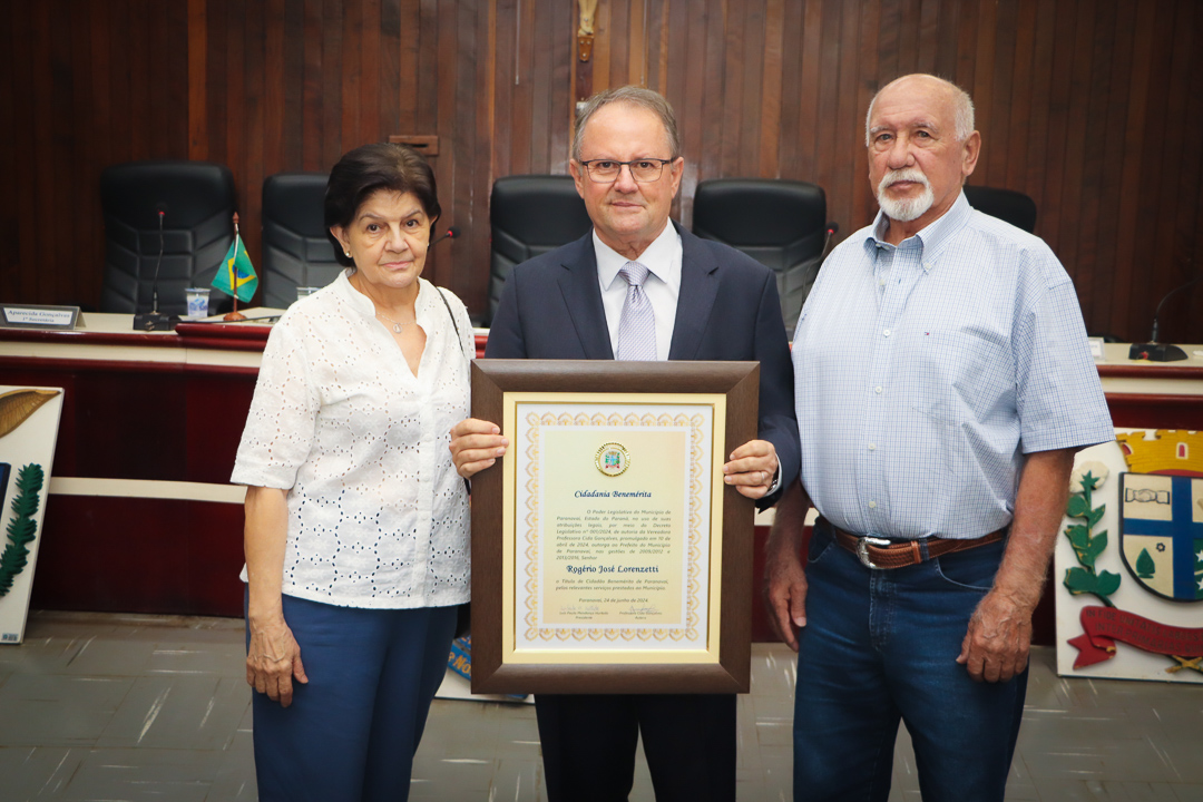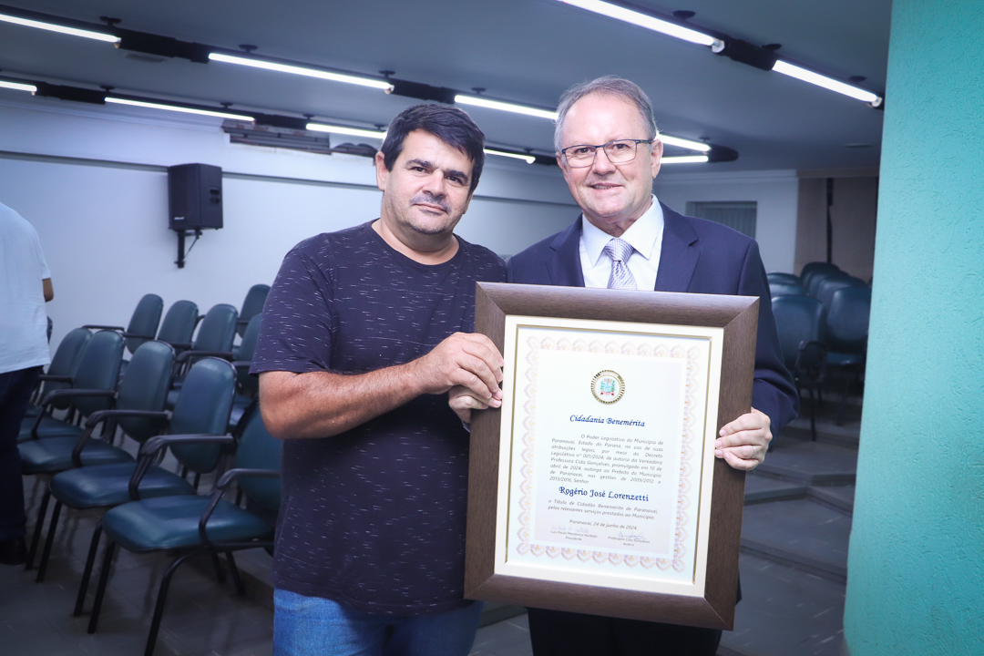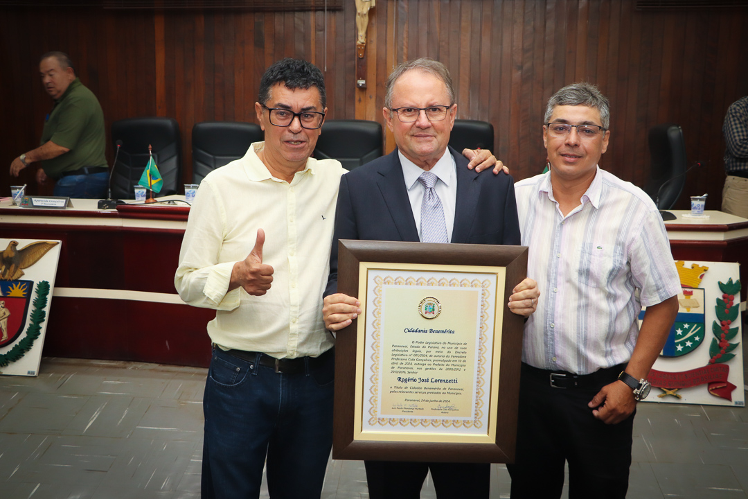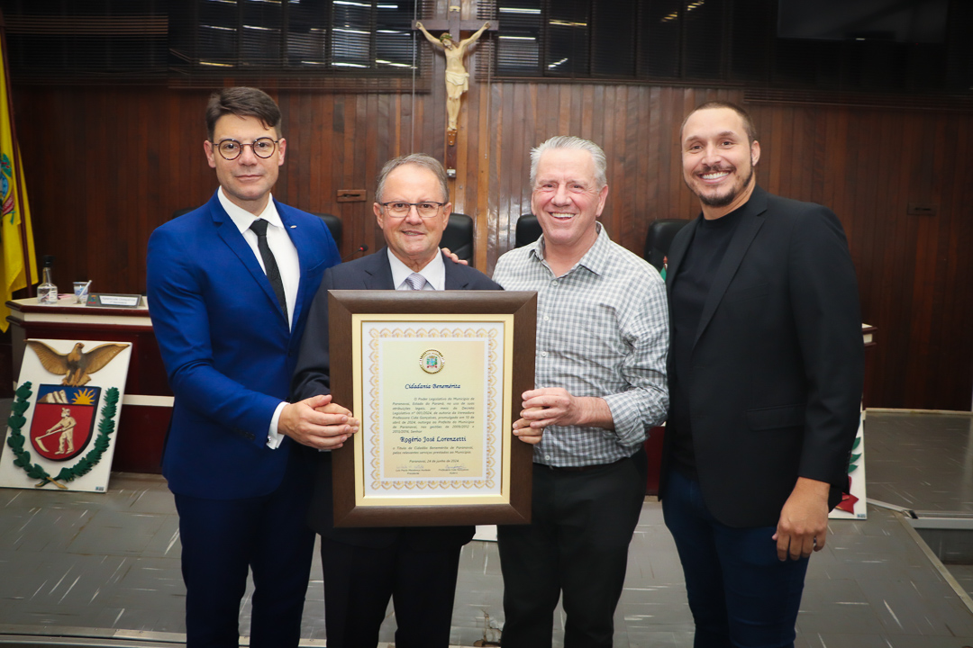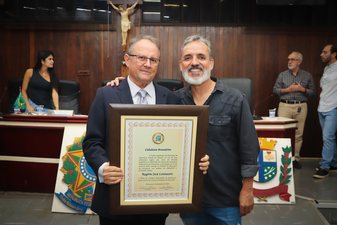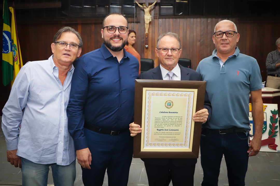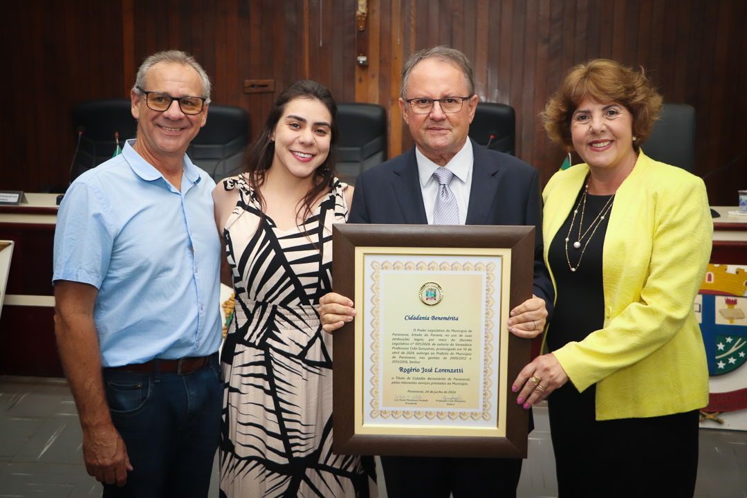 Em uma cerimônia marcada pela emoção e reconhecimento, a Câmara Municipal de Paranavaí concedeu o título de Cidadão Benemérito ao ex-prefeito Rogério José Lorenzetti. O evento, realizado no plenário da Casa de Leis, reuniu amigos, familiares, colegas de trajetória política e diversas autoridades locais e regionais.