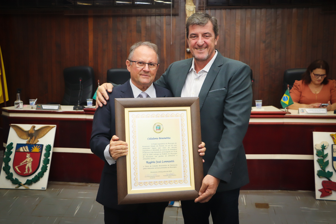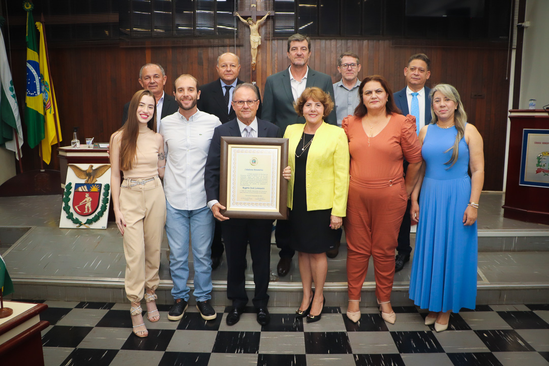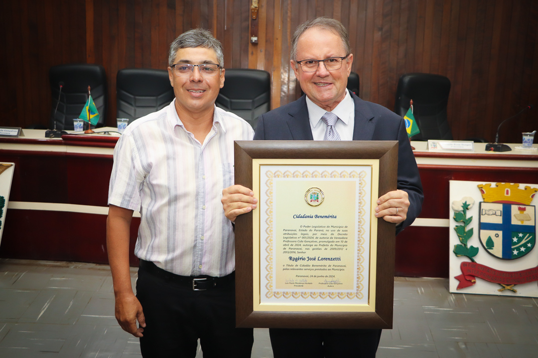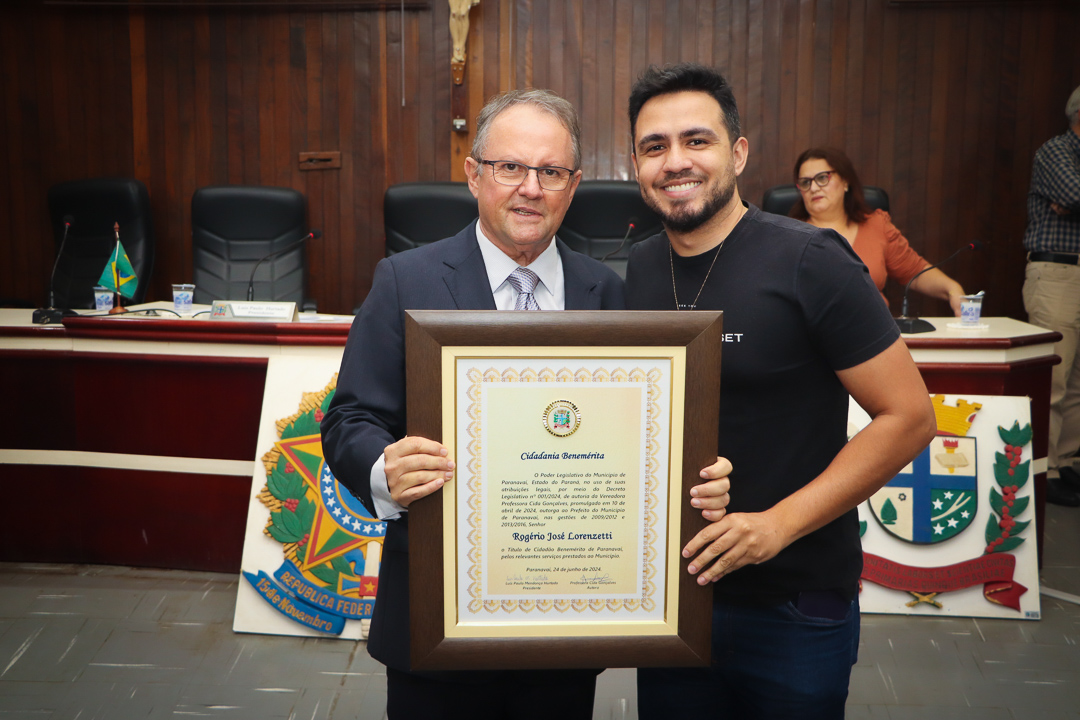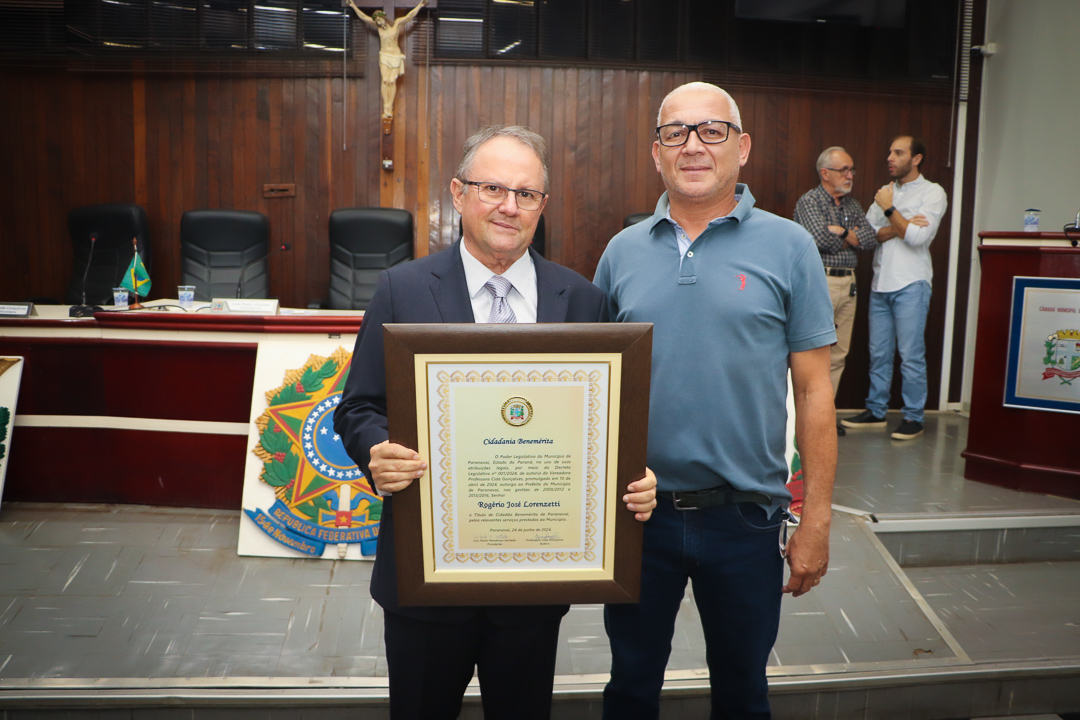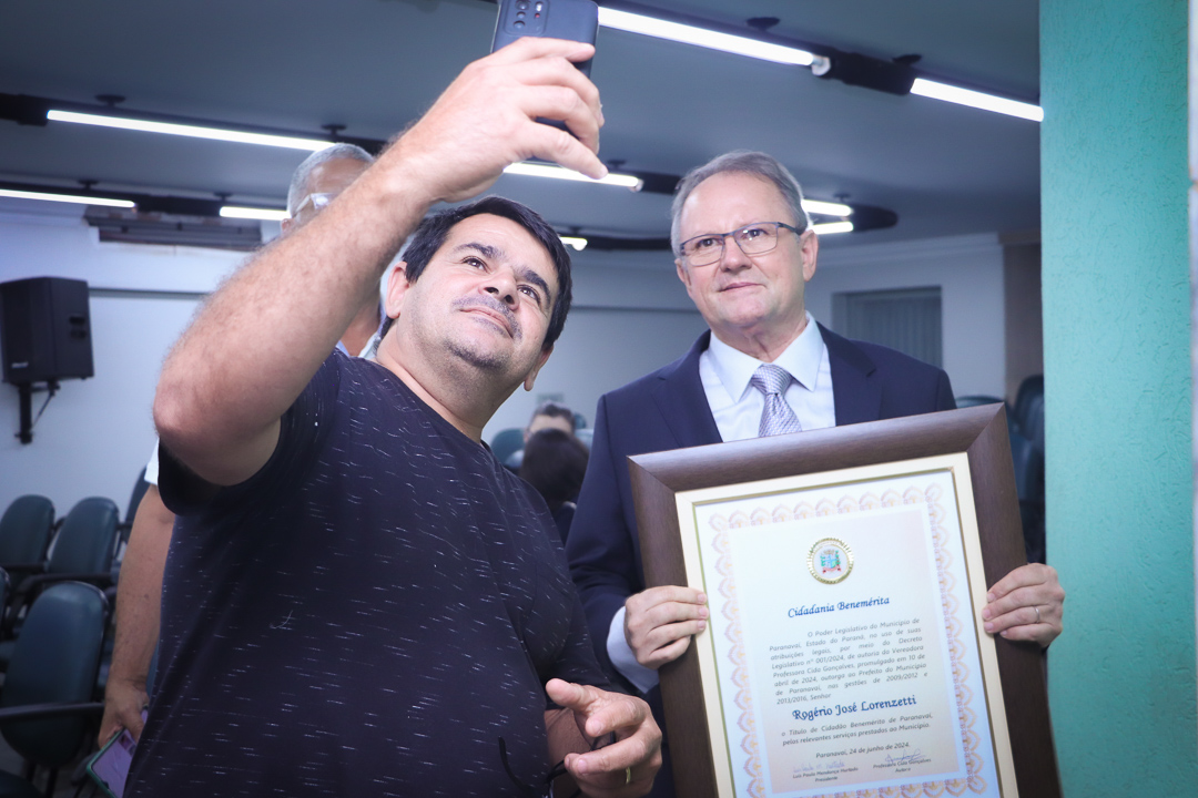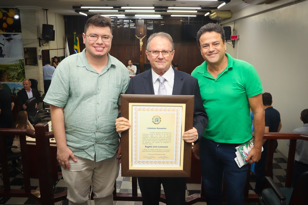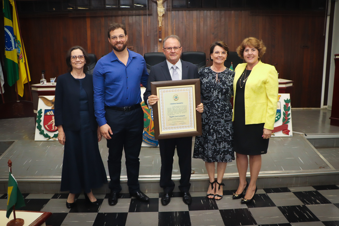 Em uma cerimônia marcada pela emoção e reconhecimento, a Câmara Municipal de Paranavaí concedeu o título de Cidadão Benemérito ao ex-prefeito Rogério José Lorenzetti. O evento, realizado no plenário da Casa de Leis, reuniu amigos, familiares, colegas de trajetória política e diversas autoridades locais e regionais.