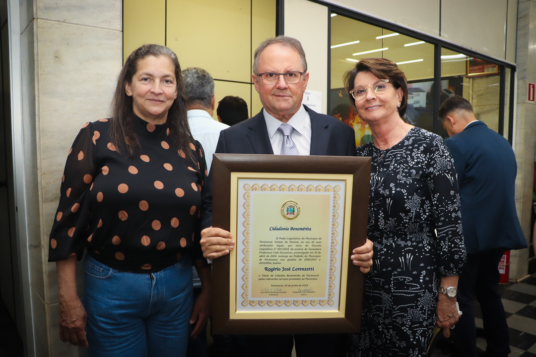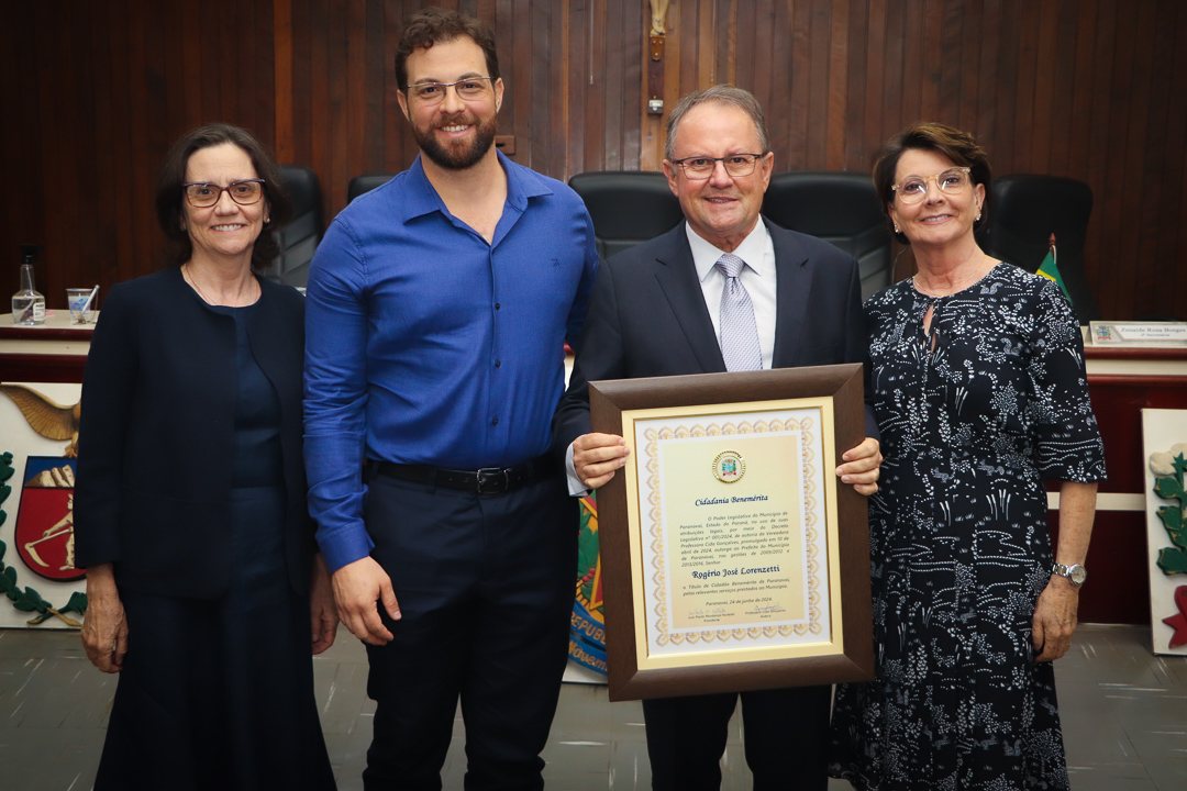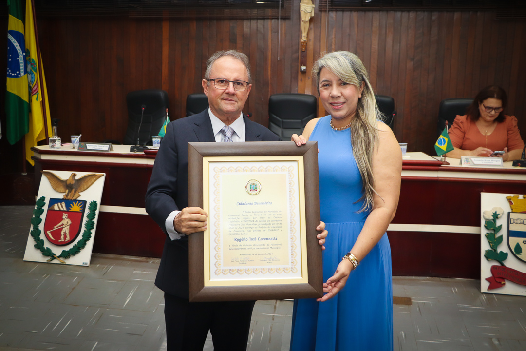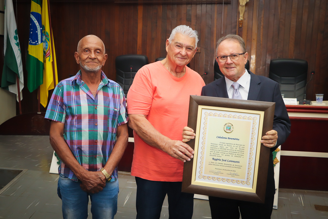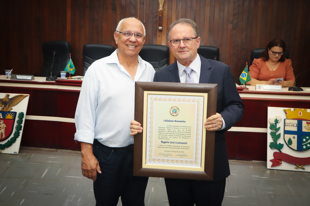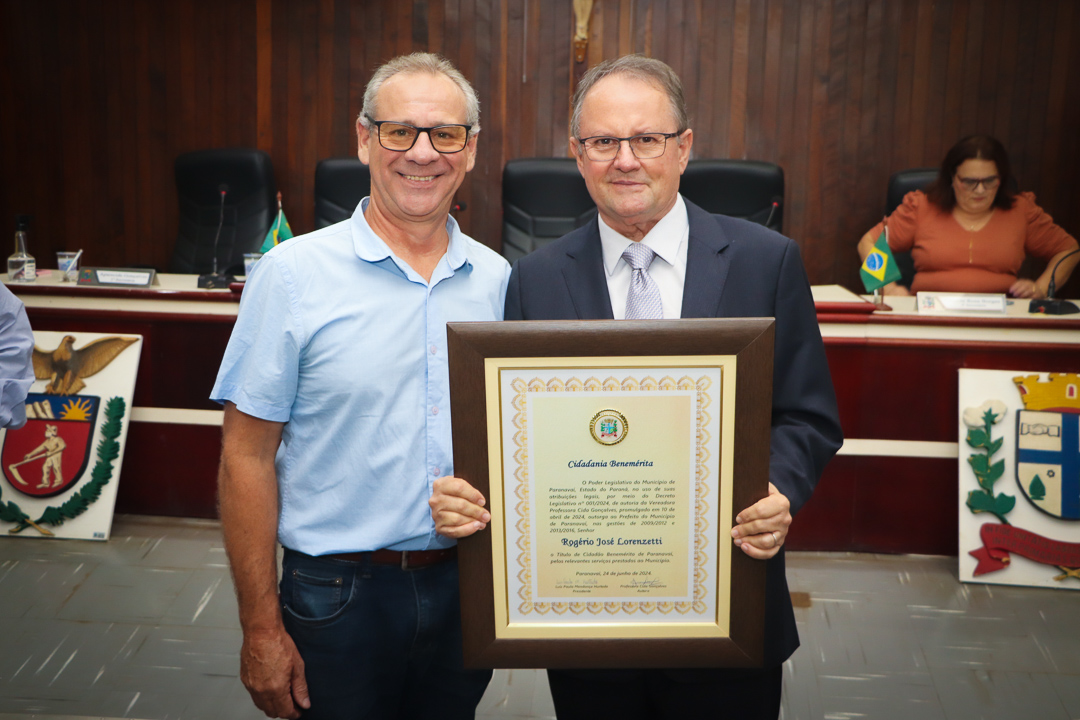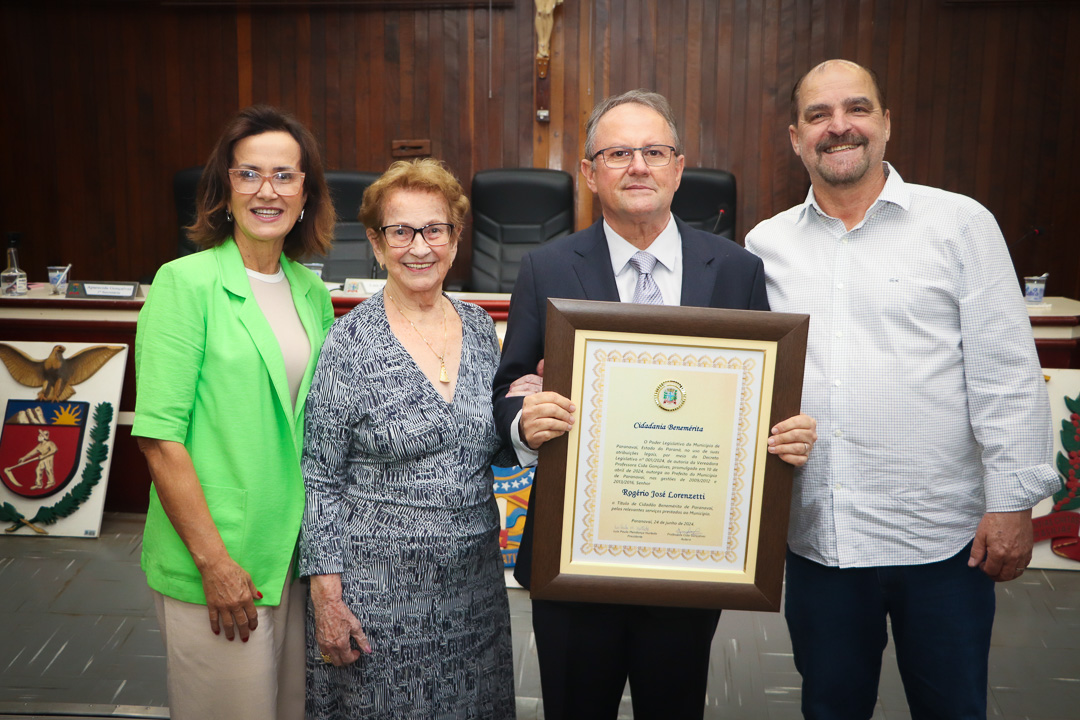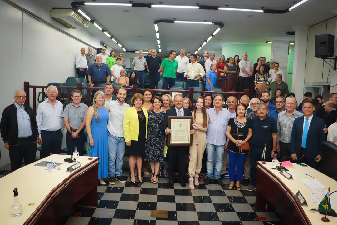 Em uma cerimônia marcada pela emoção e reconhecimento, a Câmara Municipal de Paranavaí concedeu o título de Cidadão Benemérito ao ex-prefeito Rogério José Lorenzetti. O evento, realizado no plenário da Casa de Leis, reuniu amigos, familiares, colegas de trajetória política e diversas autoridades locais e regionais.