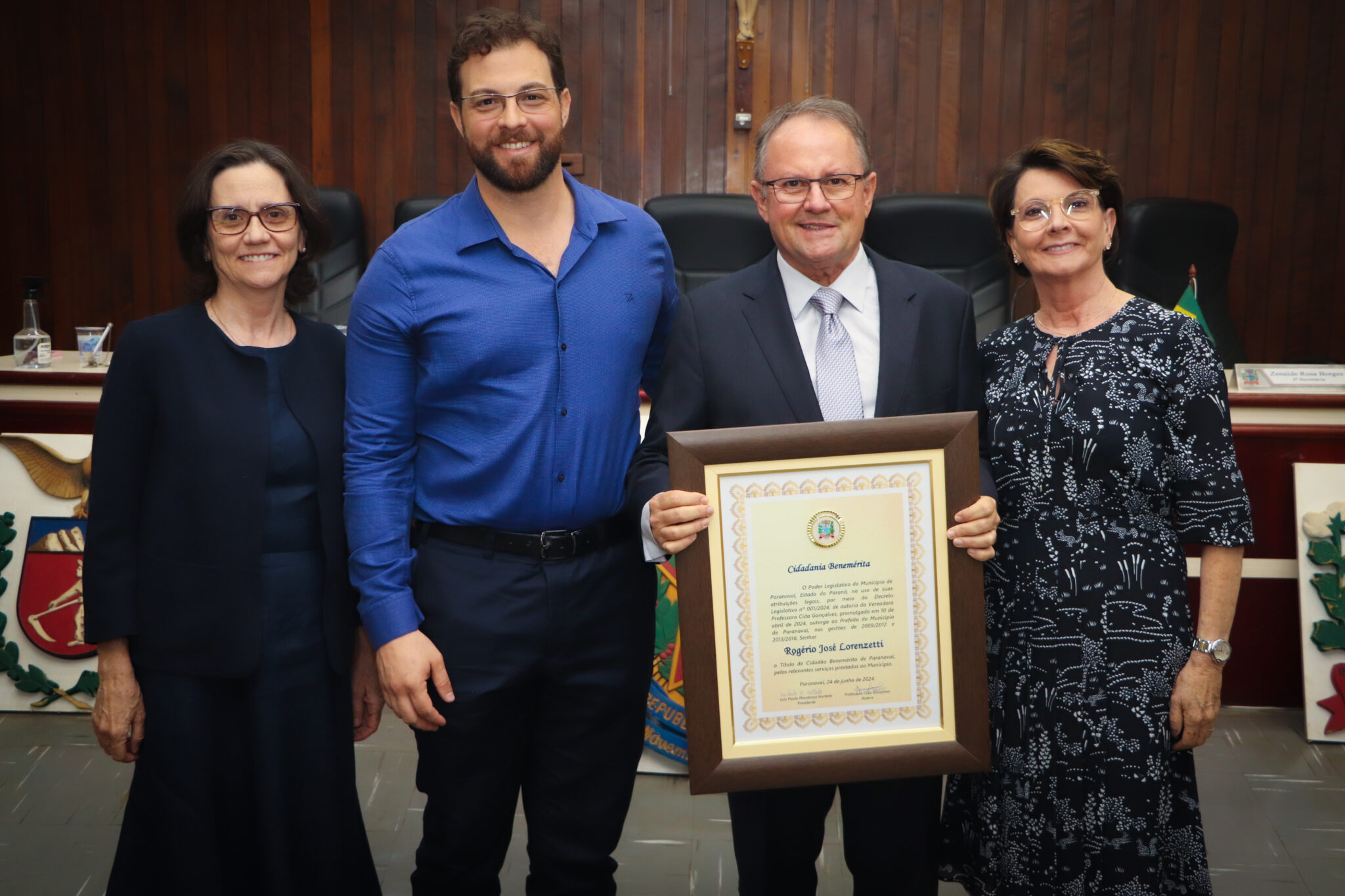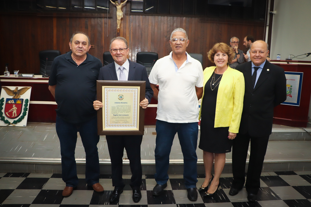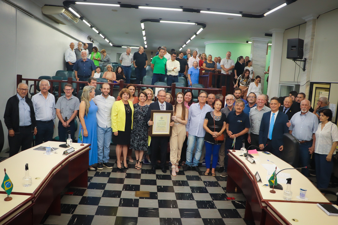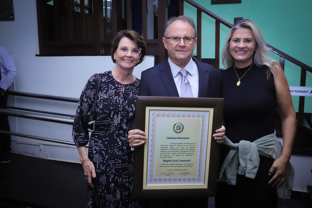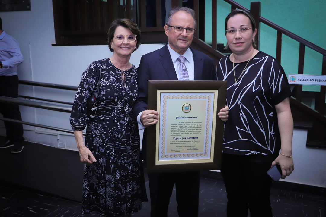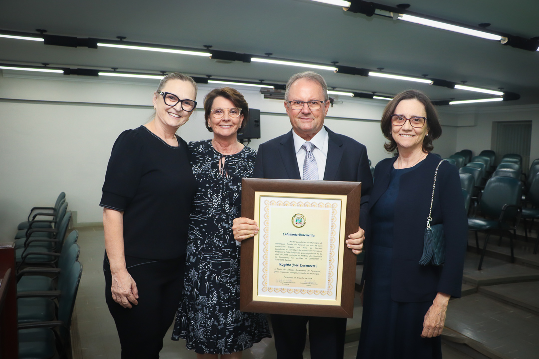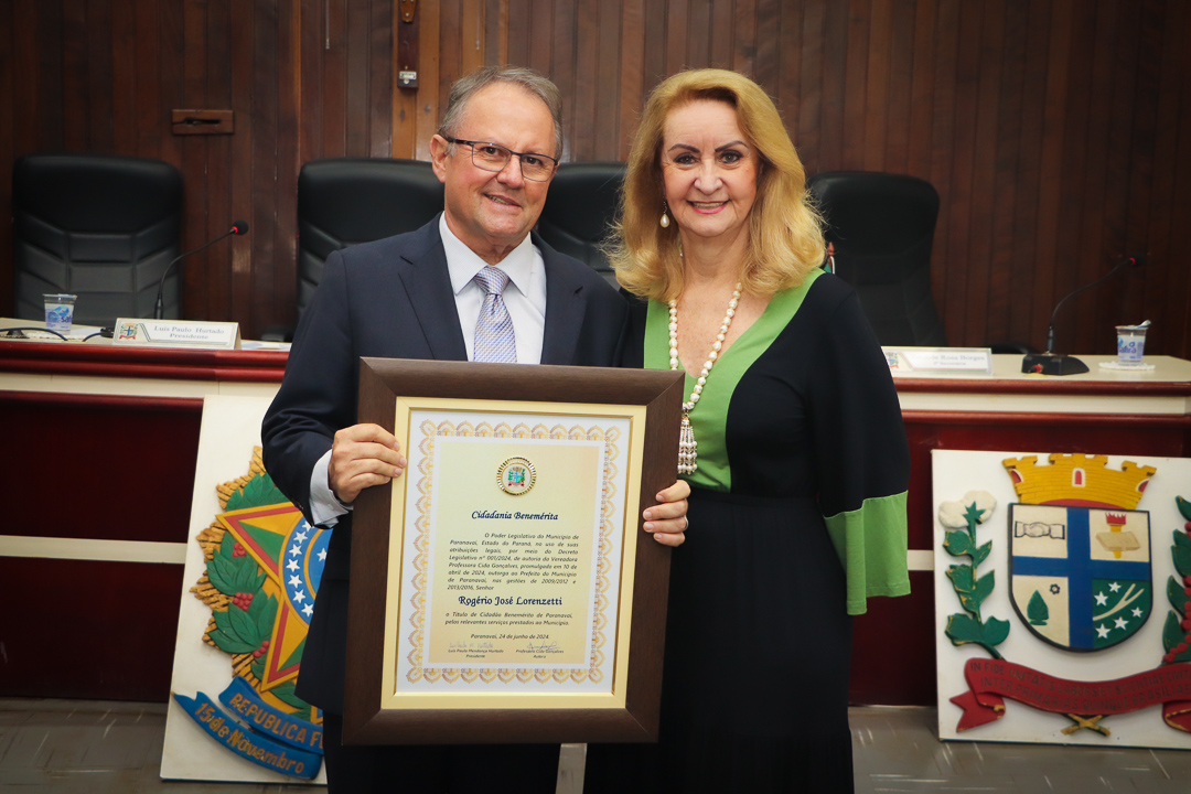 Em uma cerimônia marcada pela emoção e reconhecimento, a Câmara Municipal de Paranavaí concedeu o título de Cidadão Benemérito ao ex-prefeito Rogério José Lorenzetti. O evento, realizado no plenário da Casa de Leis, reuniu amigos, familiares, colegas de trajetória política e diversas autoridades locais e regionais.