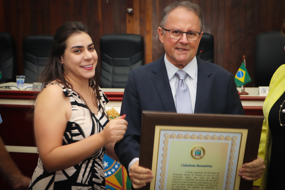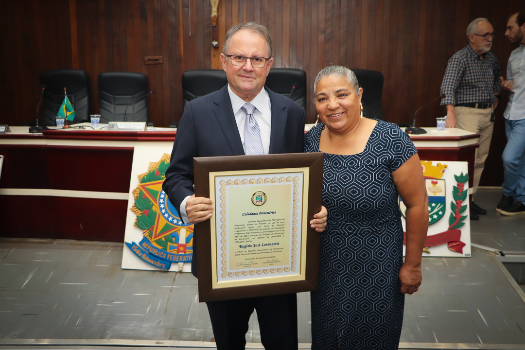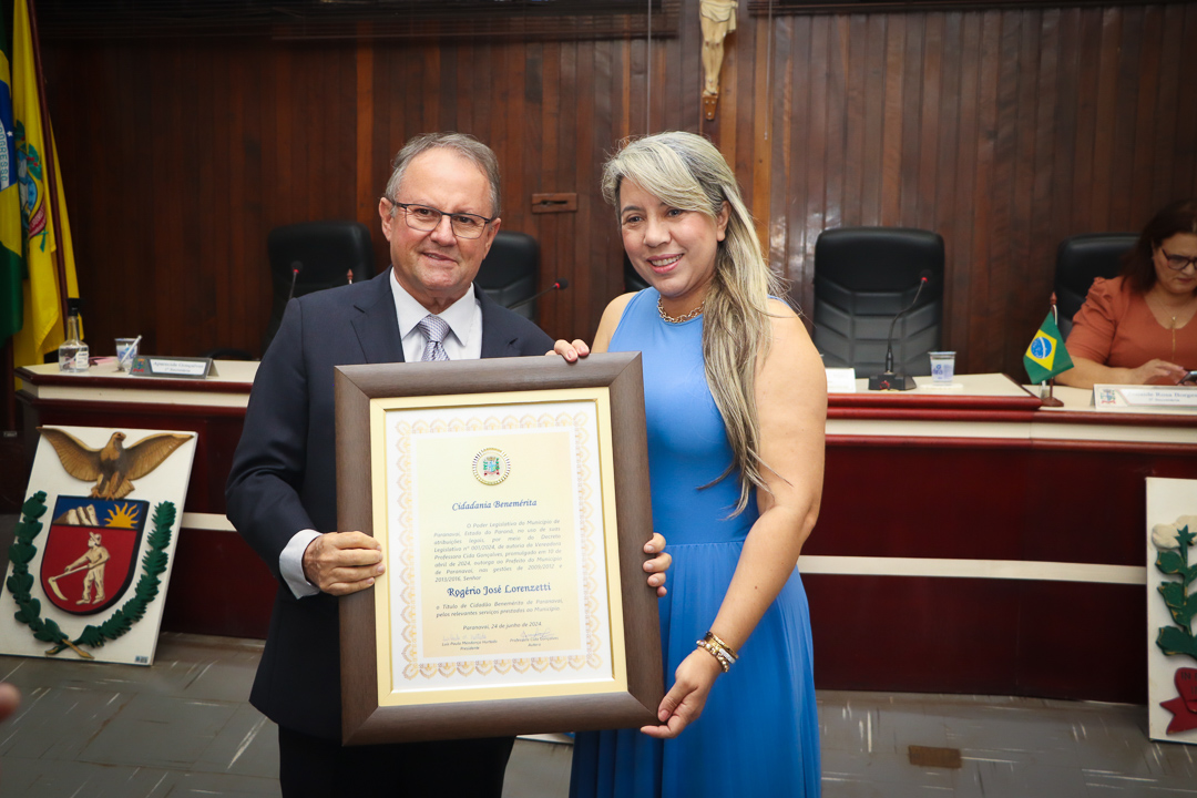 A honraria, instituída pelo Decreto Legislativo nº 001/2024, foi entregue pela vereadora Professora Cida Gonçalves, que atuou como secretária de Educação durante os oito anos de mandato de Lorenzetti (2009 – 2016). O título foi concedido em reconhecimento aos relevantes serviços prestados por Lorenzetti à comunidade de Paranavaí, destacando sua liderança e compromisso com o progresso local.