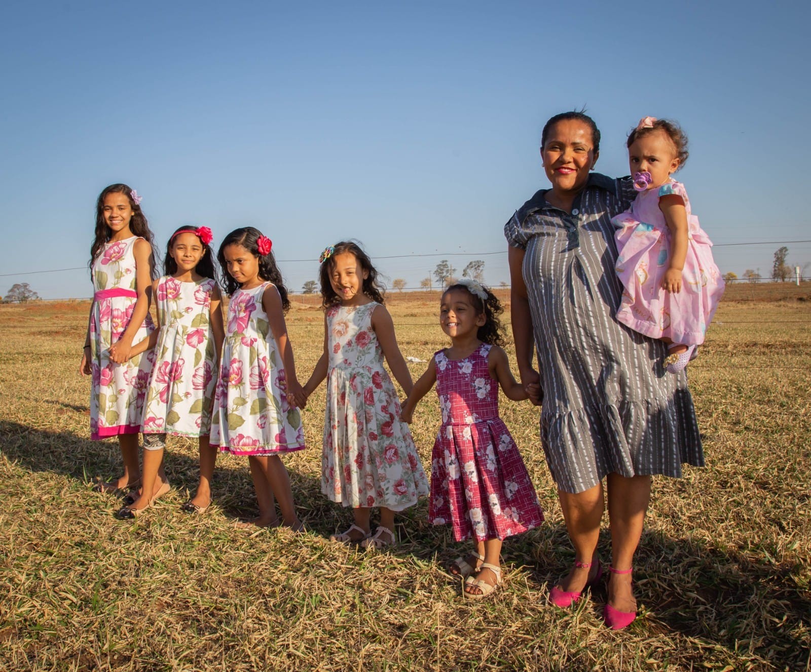 E quanto às roupas? Parece custar uma fortuna ter sempre roupas novas para os filhos de diferentes idades. Mas a mãe faz um rodízio muito valioso para que todas as peças sejam usadas por todos da melhor forma possível. O vestido da mais velha fica para a mais nova, as roupas dos maiores vão sendo passadas para os menores e o ciclo se renova. “Muitas pessoas nos presenteiam com roupas que não vão mais usar, e como eu tenho filhos de todos os tamanhos, para mim tudo é sempre muito bem-vindo”, diz Gisele.