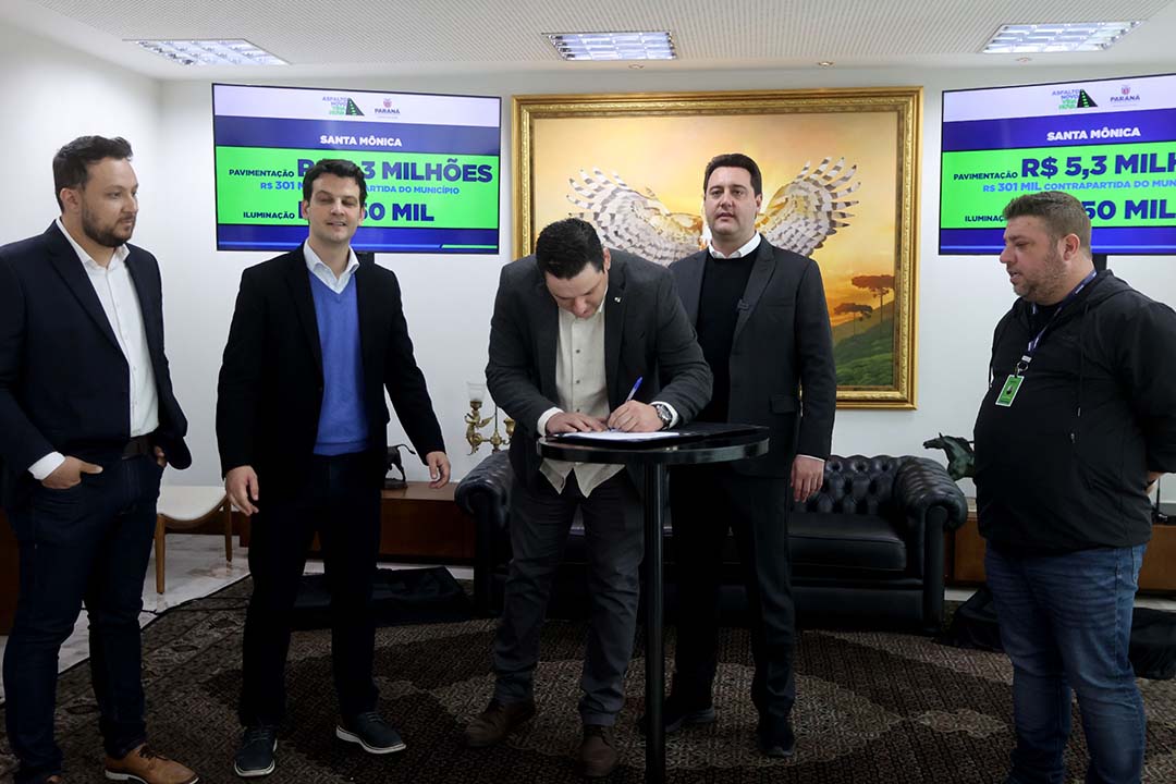 Santa Mônica – Um exemplo do trabalho a ser realizado é Santa Mônica, no extremo noroeste. O município tinha pouco mais de 30% das ruas da área urbana asfaltadas. O município vai receber, agora, R$ 5,3 milhões para pavimentar quase todas as vias, sendo R$ 500 milhões do Governo do Estado e R$ 301 mil de contrapartida. Também serão destinados mais R$ 750 mil para a iluminação pública em toda a cidade.