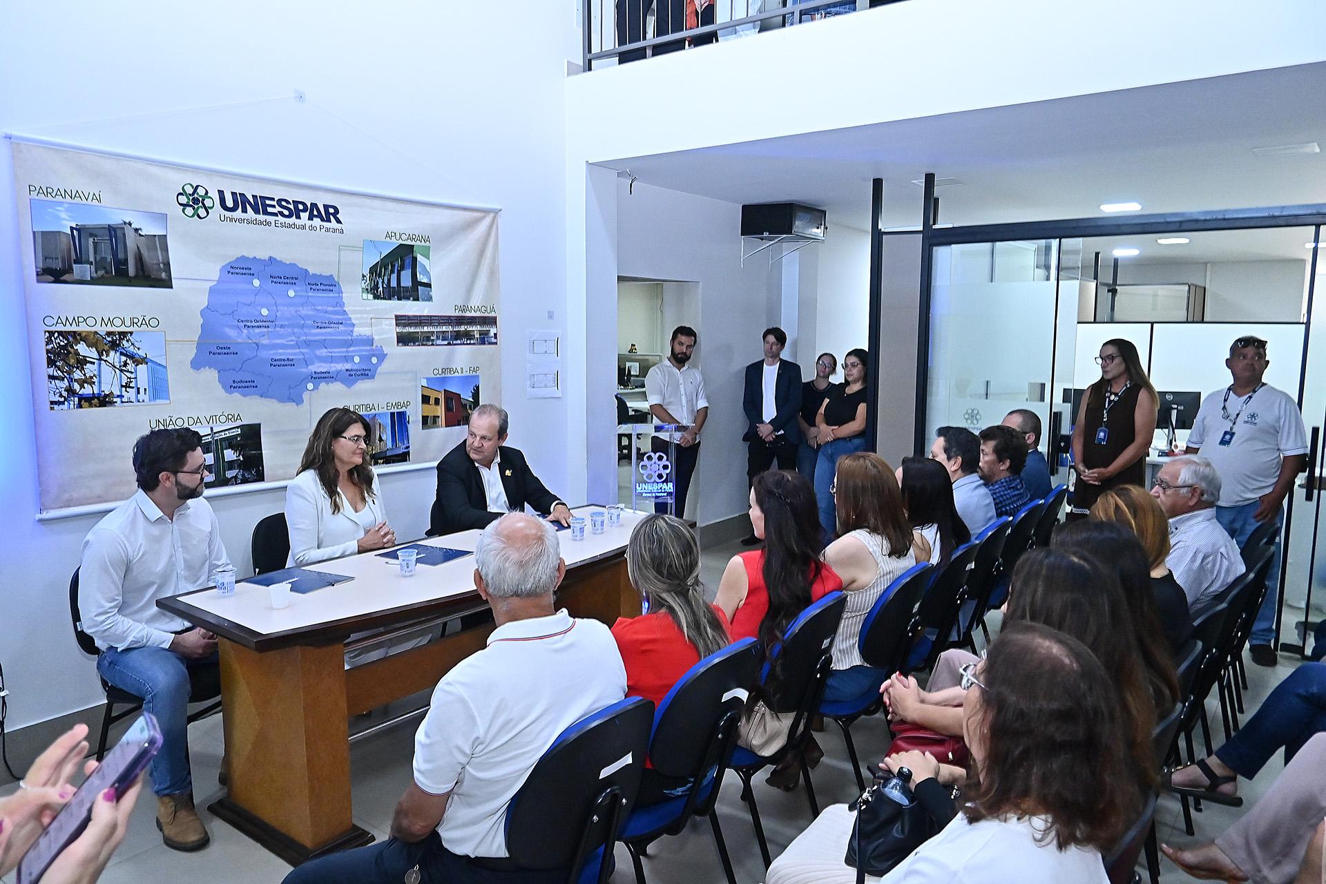 A solenidade contou com a presença do secretário estadual de Ciência, Tecnologia e Ensino Superior, Aldo Bona, da reitora da Unespar, Salete Paulina Machado Sirino, e do sócio-proprietário da BC Construtora, empresa que executará as obras, Douglas Maycon Colpo.