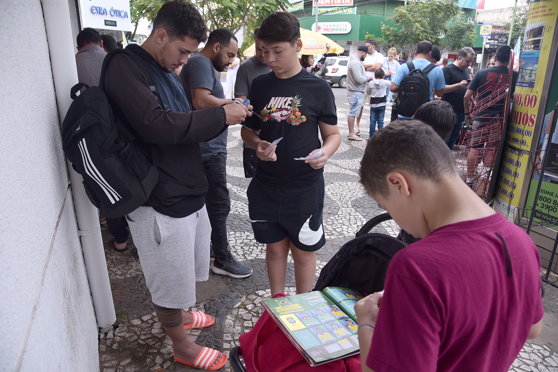Desde agosto, quando as figurinhas chegaram, os sábados e domingos pela manhã são destinados à troca de figurinhas e compartilhamento de histórias. Marcos Magalhães é empresário e pode ser considerado um dos mais experientes nesse jogo.