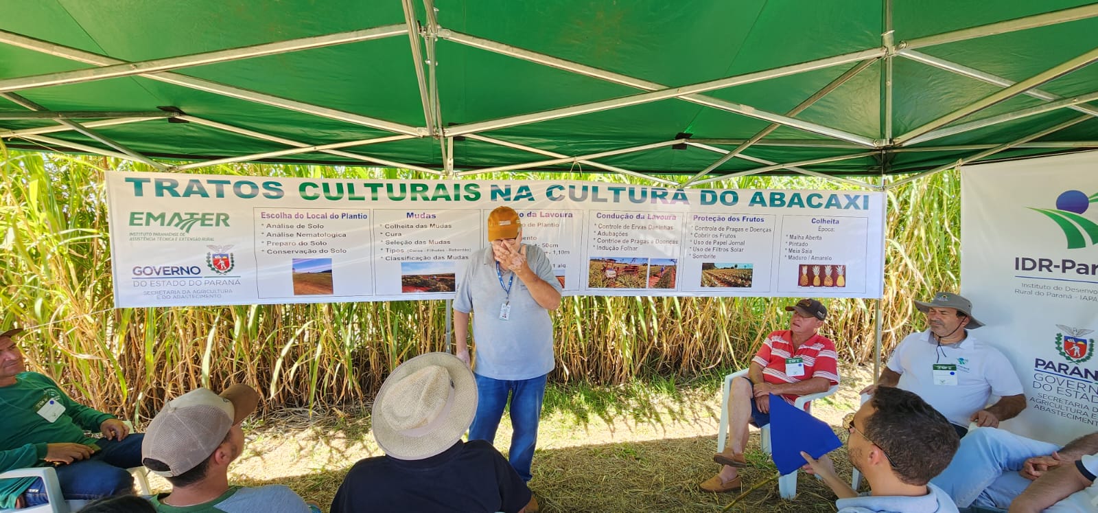 Ciente dos desafios, “seo” Moreira é frequente participante de atividades técnicas e agora trabalha em sua propriedade a transição da produção convencional de abacaxi para o plantio no mulching, técnica de cobertura do solo com um plástico filme, de baixo custo. A inovação levou o IDR-PR e a Prefeitura de Terra Rica a organizarem um dia de campo para produtores profissionais técnicos e estudantes.
