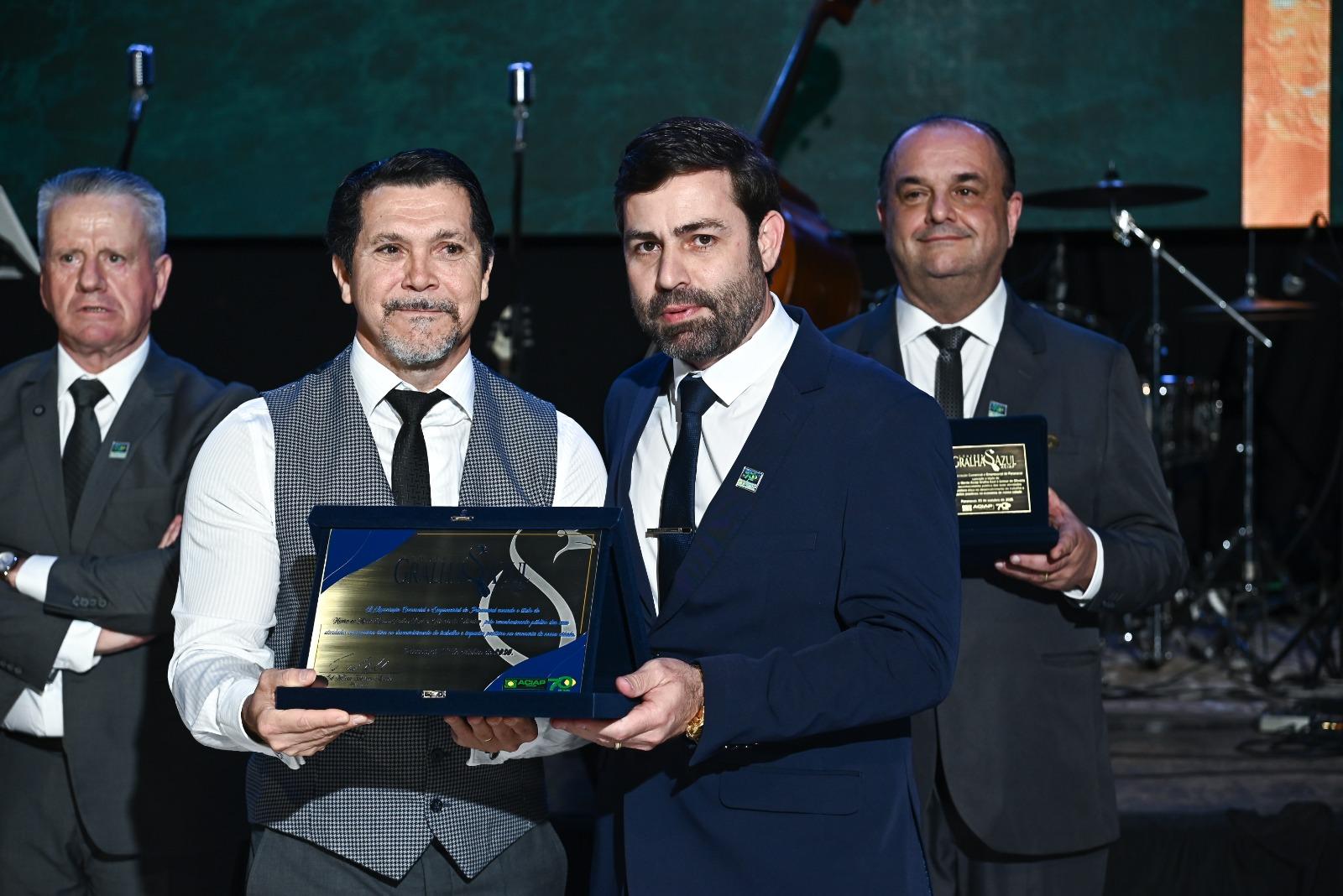 Vice-presidente da Aciap, Sérgio Carvalho, entregando a Comenda Gralha Azul