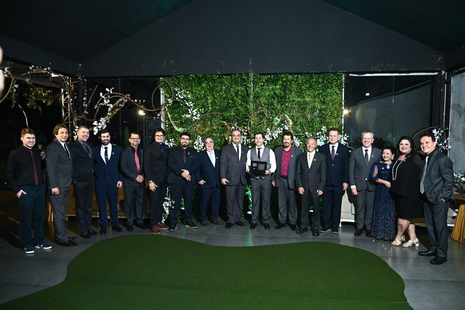 Um dos pontos altos da noite foi a entrega da Comenda Gralha Azul, a mais alta honraria concedida pela Aciap, ao professor e reitor da Unifatecie, Gilmar de Oliveira, em reconhecimento à sua trajetória inspiradora, à conduta ética e à contribuição significativa para o desenvolvimento econômico e social de Paranavaí e região.