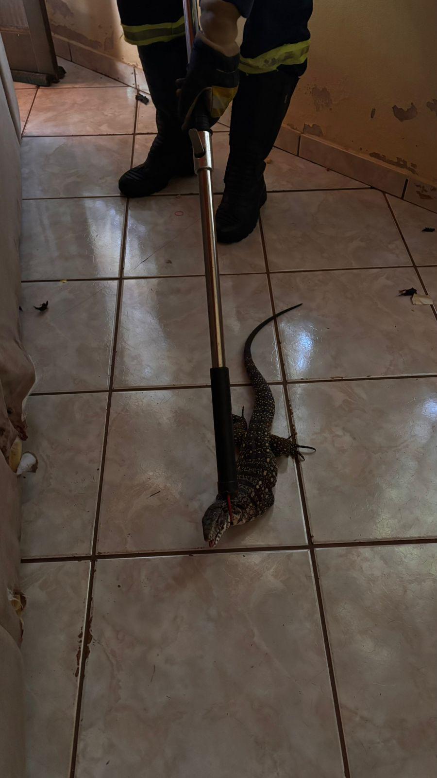 A equipe realizou o procedimento de busca e salvamento, identificando o réptil e efetuando a captura de forma segura, sem riscos para os moradores nem para o animal. Após a remoção, o lagarto foi devolvido ao seu habitat natural.