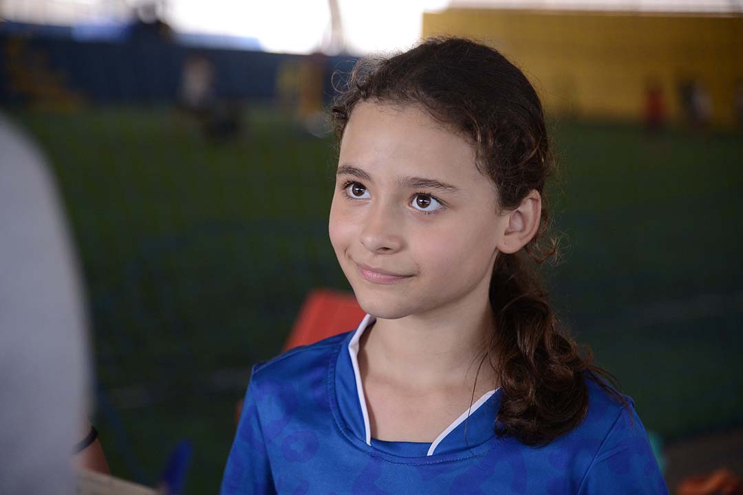 Laura de Almeida, também de 9 anos, ficou feliz por jogar futebol inflável. É mais ou menos assim: enquanto os adversários tentam fazer o gol, enfrentam a instabilidade do campo de ar. “A gente fica pulando o tempo todo, é difícil.”