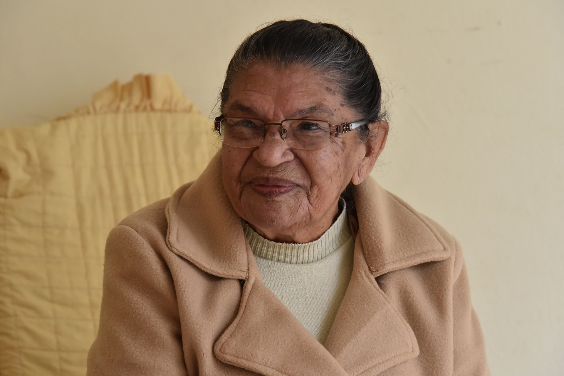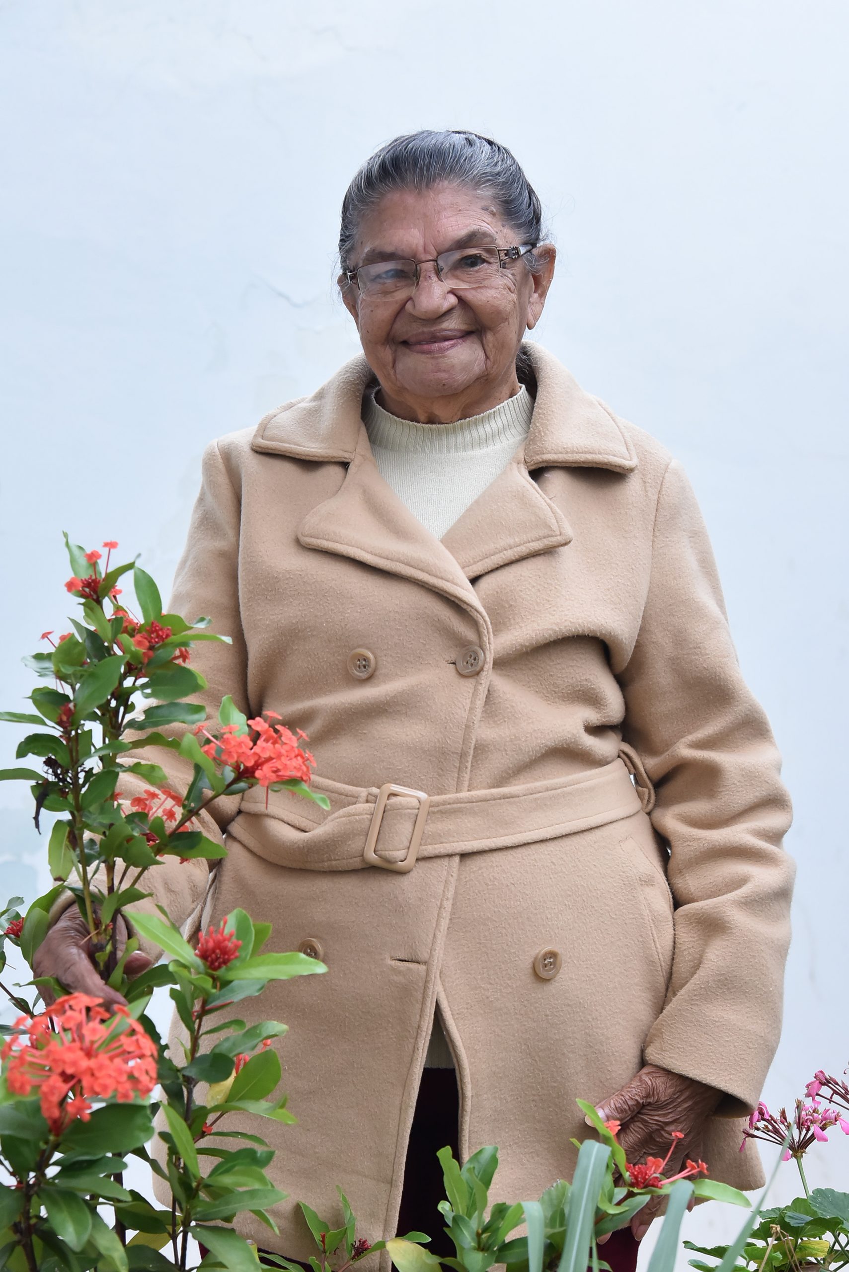 O cheiro de café dominava o ambiente. Tinha plantas e flores por todo o jardim. Dona Maria Anilda de Souza, de 93 anos, nos esperava sentada confortavelmente em sua cadeira de área, com uma jaqueta de frio aconchegante. Muito simpática nos recebeu com um sorriso no rosto.