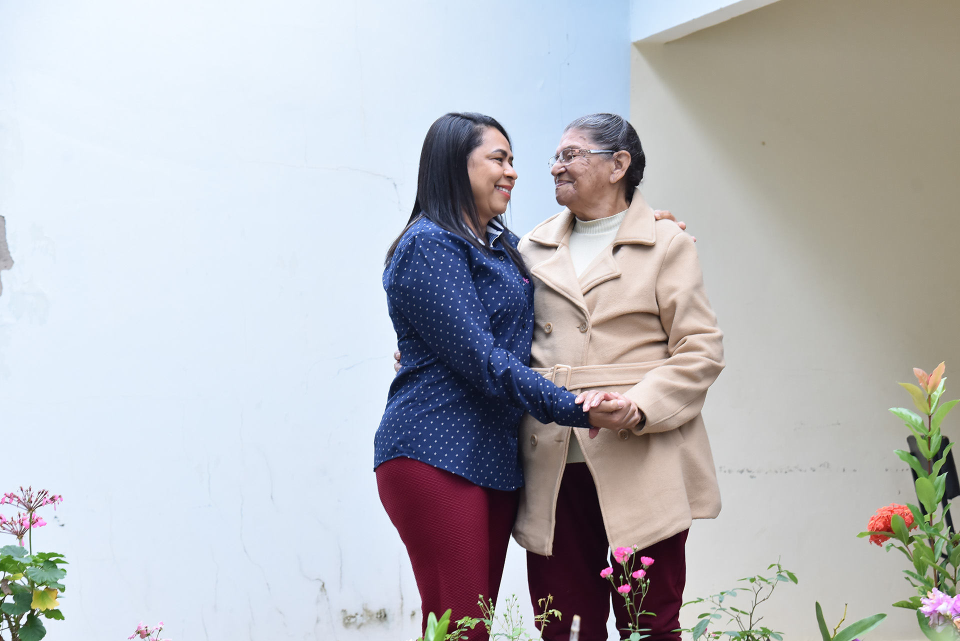 “O jardim quem cuida é ela, ela ama plantas e faz tudo sozinha. Até pouco tempo, era ela quem lavava as próprias roupas”, explica a filha toda orgulhosa das atividades da mãe. Quis saber também sobre os desafios do século 21, como a criação dos filhos, se ela achava diferente e mais complicado. Ela, muito sábia, respondeu o seguinte. “Eu não vejo muita diferença entre aquela época e hoje, porque tem que ter respeito. Meus filhos tinham que me respeitar. E hoje, tem que ser igual. Se precisasse eu daria a vida por cada um deles, e, ainda hoje, sou a mesma mãe”, encerrou a frase com a mão próxima ao coração.