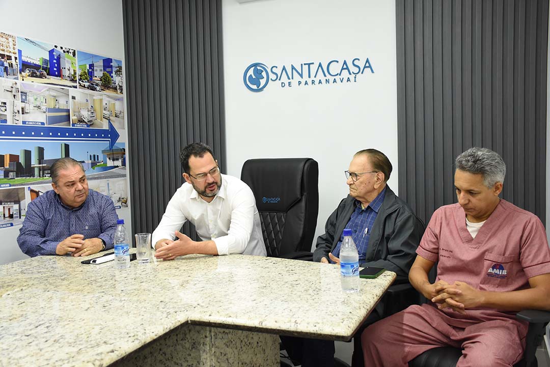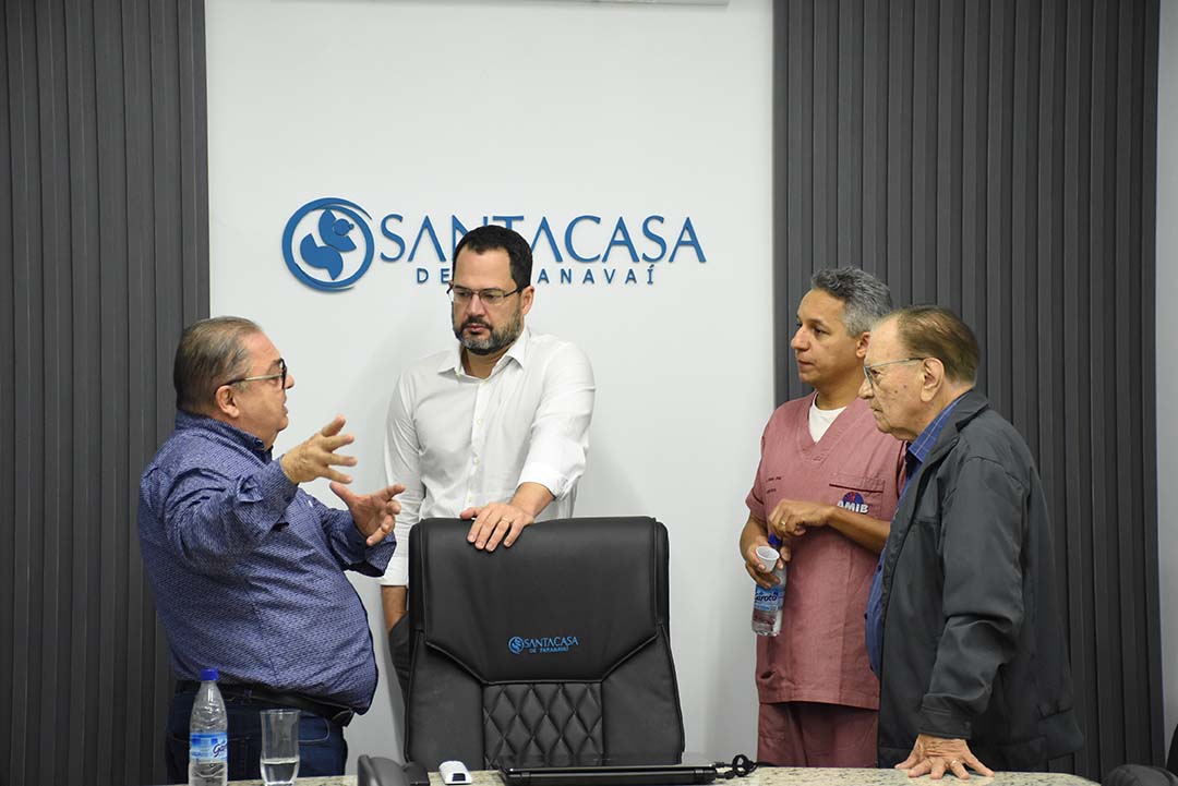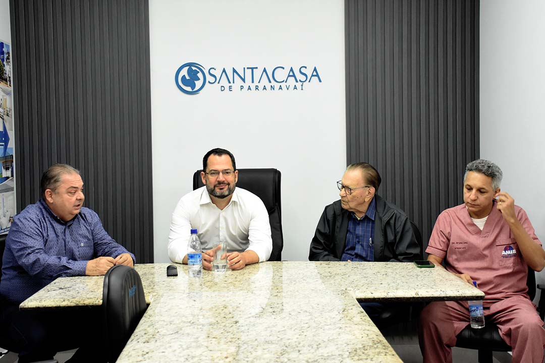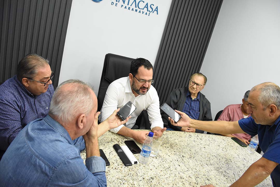 Entrevista coletiva – Após visitar as alas de terapia intensiva da Santa Casa de Paranavaí, o médico e pesquisador do Albert Einstein concedeu entrevista coletiva à imprensa. Acompanharam: o diretor-geral da Santa Casa, Héracles Alencar Arrais, o presidente Renato Pltaz Guimarães e Bruno Leal.