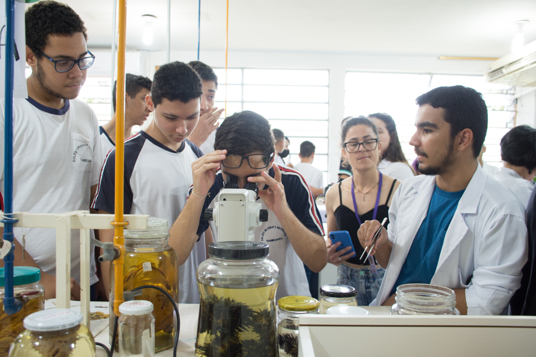 Os mais procurados são Direito, Enfermagem e Educação Física, mas os laboratórios de outras graduações também chamam a atenção dos alunos do ensino médio. A exposição de espécies de animais e a possibilidade de analisar organismos pelas lentes do microscópio atraíram os adolescentes até o laboratório de Ciências Biológicas.