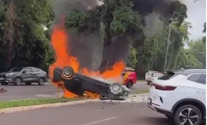 Motorista morre após carro capotar e pegar fogo na Avenida Itororó, em Maringá; VÍDEO