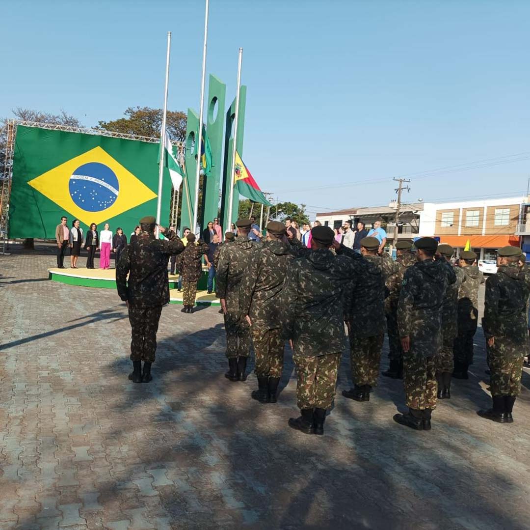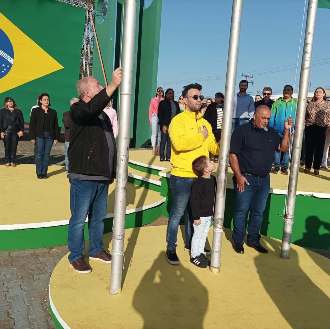 Para o hasteamento dos pavilhões, nacional, estadual e municipal, foram escolhidos os vereadores, Pedrinho Teodoro, Dr. Luiz Geraldo e Dilsinho respectivamente. Os presentes tiveram a oportunidade em ato de civismo cantar os Hinos Nacional e da Independência do Brasil.