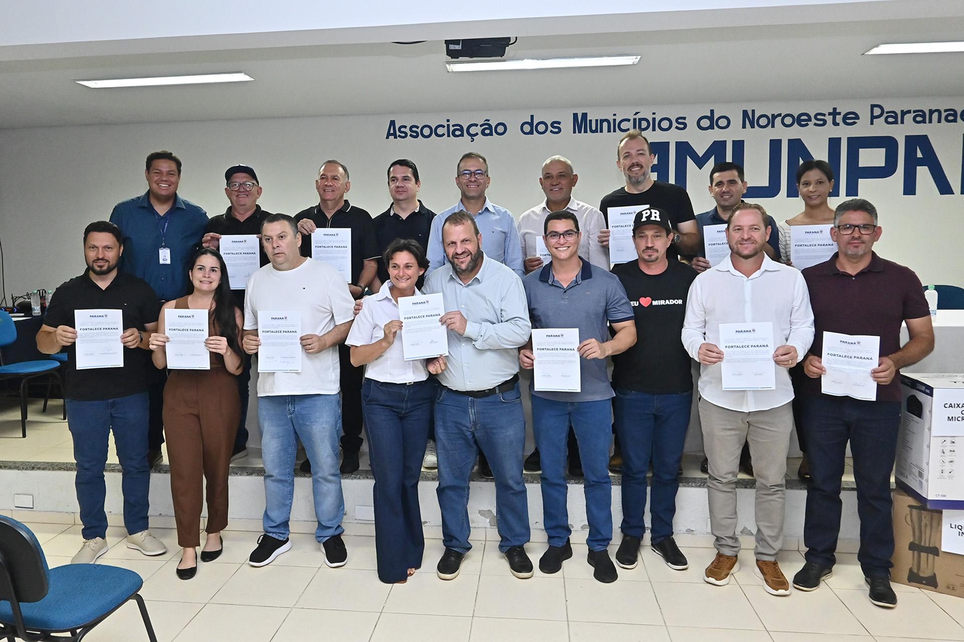 Em visita a Paranavaí, o secretário de Estado do Desenvolvimento Social e Família, Rogério Carboni, recebeu prefeitos da Associação dos Municípios do Noroeste Paranaense (Amunpar) para entregar equipamentos que vão fortalecer a estrutura de instituições de assistência social em 14 municípios.