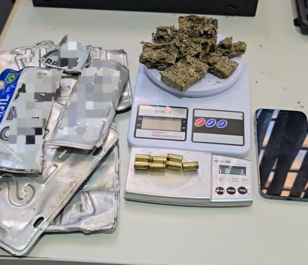 Durante a manhã, policiais realizaram buscas em cinco residências, apreendendo cinco motocicletas. Em uma das casas, com um jovem de 19 anos, foram encontradas 101 gramas de maconha e sete munições deflagradas, segundo a PM. O homem foi detido e encaminhado à delegacia.