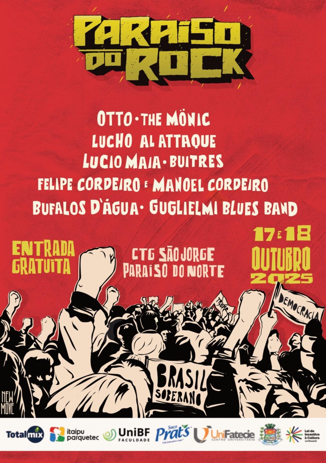 Nos dias 16, 17 e 18 de outubro, Paraíso do Norte se transforma novamente em palco para um dos eventos mais tradicionais da cena cultural do Noroeste do Paraná: o Paraíso do Rock. Em sua 14ª edição, o festival promete reunir cerca de 1.500 pessoas durante os três dias de programação gratuita, marcada por shows de bandas locais, nacionais e internacionais, além de atividades culturais paralelas.