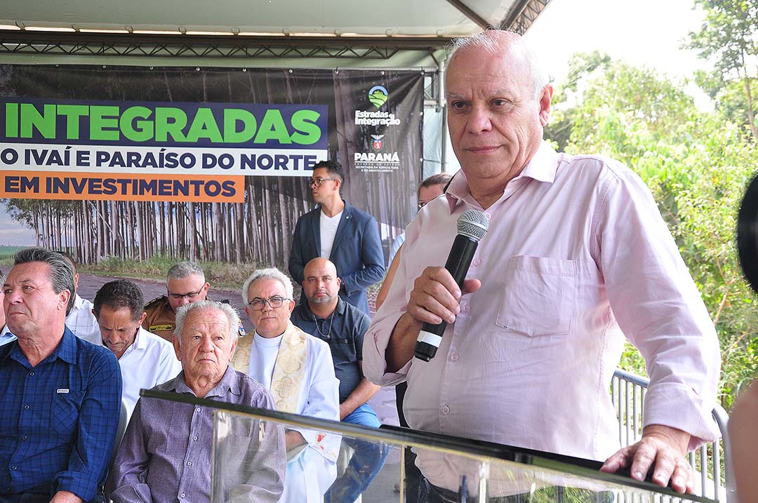 “Representa a força do Paraná. Muitos tentaram, mas nós conseguimos fazer.” Além da inauguração da estrada, destacou o secretário, foram assinados três convênios para a pavimentação de novos trechos em Marilena, Santa Isabel do Ivaí e Itaúna do Sul, totalizando 7,6 quilômetros.