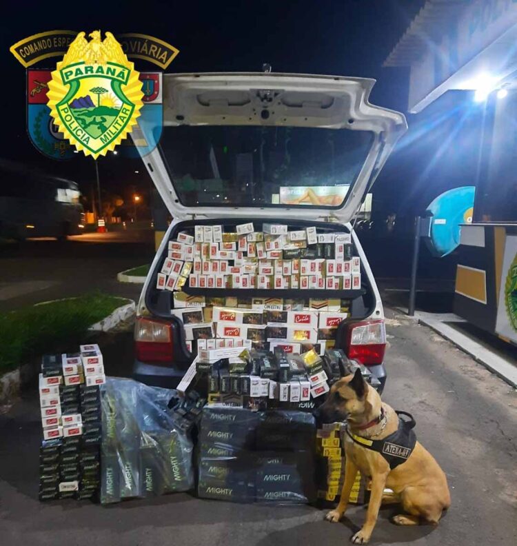 De acordo com o boletim (PRE), a equipe realizava uma operação com cães farejadores pela rodovia quando parou um veículo Fiat/Uno com placas de Curitiba. Durante a revista no interior do carro, os policiais encontraram dez caixas de cigarros de origem estrangeira com o valor estimado de R$ 43.000,00.