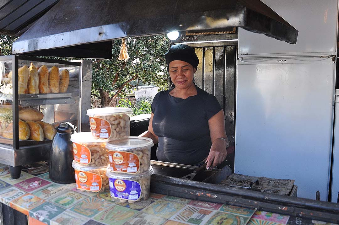 Edna Santos conta que a pastelaria ficava no Jardim São Jorge e que a mudança de bairro foi motivada por questões familiares. A jornada de trabalho é longa, das 7h às 23h, mas a dedicação é necessária, afinal os produtos utilizados para o preparo dos alimentos estão cada vez mais caros. É preciso vender mais para manter a renda mensal.