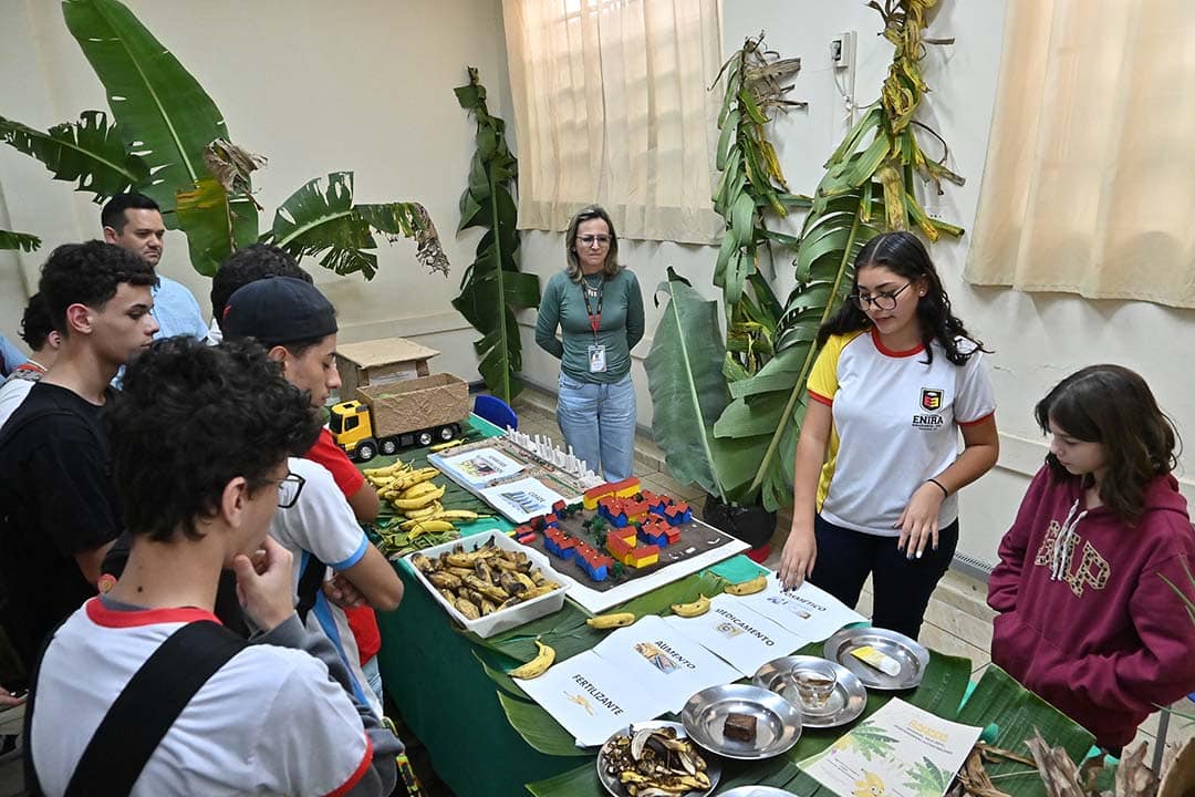 Os alunos do Colégio Estadual Enira Moraes Ribeiro, em Paranavaí, perceberam que a casca da banana poderia ter outra destinação além do cesto de lixo. Descobriram que dá para utilizar o produto na elaboração de alimentos, fertilizantes, medicamentos e cosméticos.