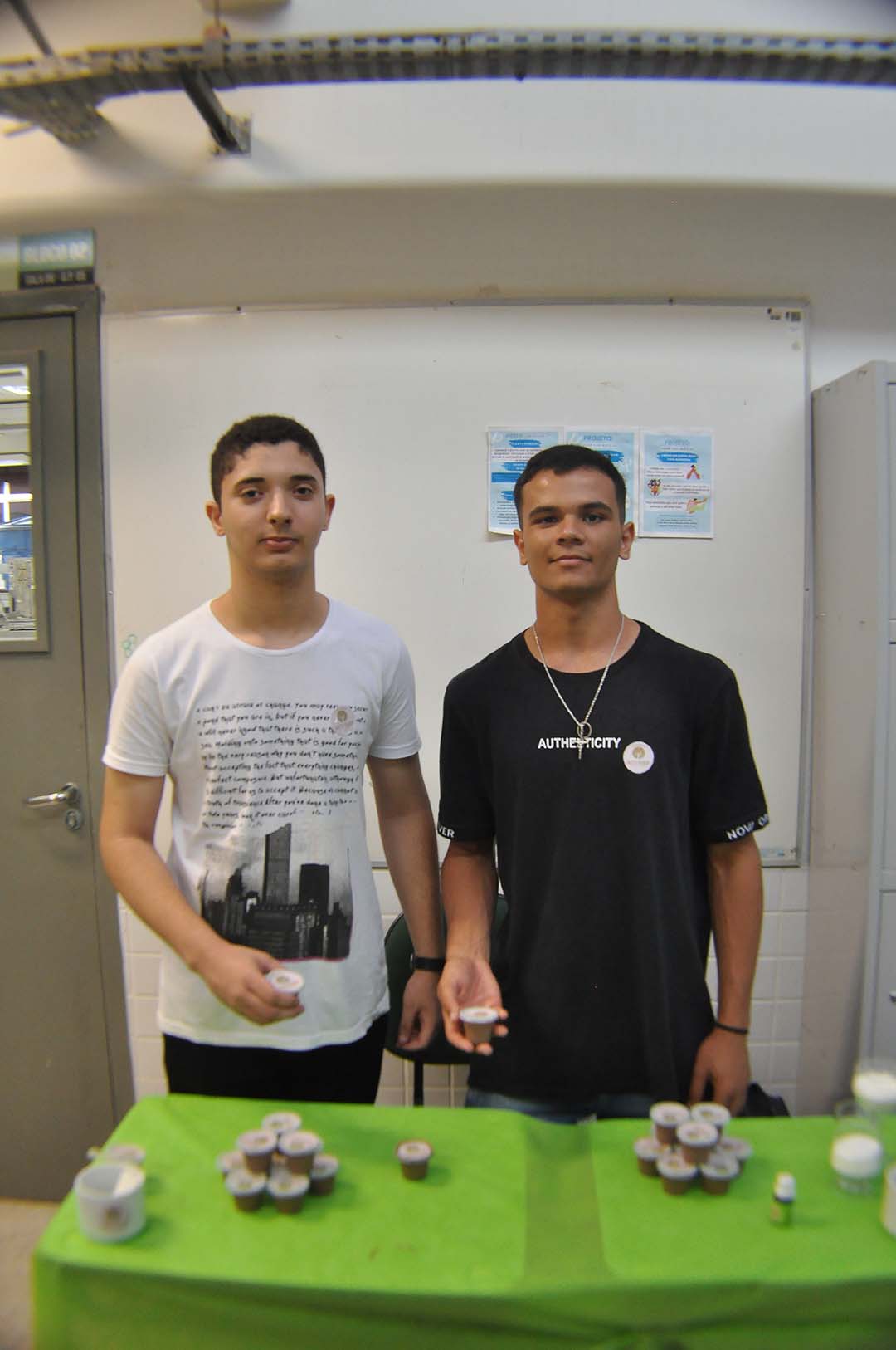 A equipe formada por Felipe, Alisson, Isabelli, Raphaela, Rhiana, Yasmim e Rebeka começou as pesquisas em julho e fez experimentos até encontrar a quantidade correta de cada ingrediente – os sabores são atraentes e incentivam os degustadores a repetir, mas vamos com calma (grifo do repórter).