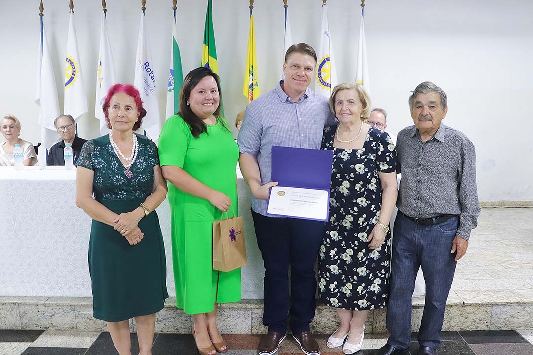 O Rotary Club de Paranavaí – Fazenda Brasileira – realizou na noite desta segunda-feira (23) uma reunião festiva para homenagear grandes personalidades da cidade. O médico Jorge Luiz Pelisson e a professora Líria Balestieri receberam certificados pelos serviços prestados a Paranavaí. Já Bruno Dal Prá Campano recebeu o reconhecimento Companheiro Paul Harris – da Fundação Rotária – pela contribuição social, legado do avô Claudino Dal Prá (falecido em fevereiro de 2022).