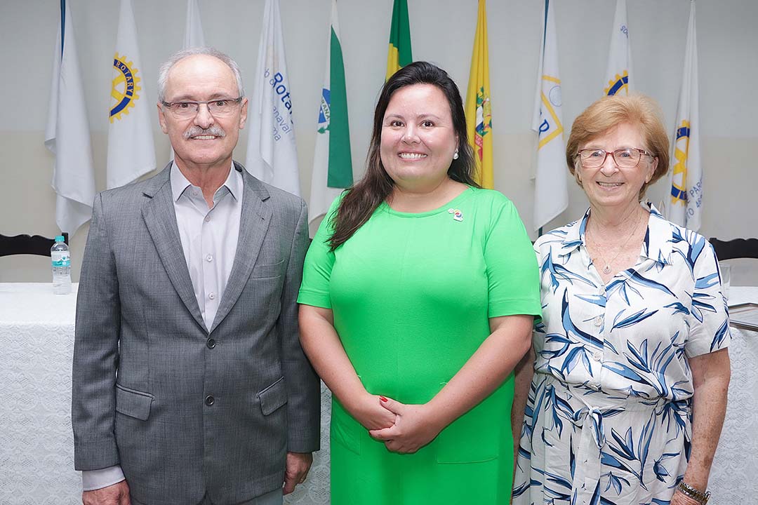 Presidente – Presidente do Rotary Club Paranavaí – Fazenda Brasileira, Caroline Vendramin falou sobre a importância dos homenageados. Citou a sequência do trabalho de Claudino Dal-Prá, agora com o seu neto Bruno; a relevância da trajetória da professora Líria Balestieri e a extensa carreira do médico Jorge Pelisson.