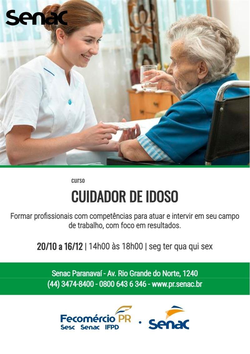 O Senac Paranavaí está com inscrições abertas para o curso gratuito de cuidador de idosos. Com vagas limitadas, a qualificação é uma oportunidade para quem busca uma nova área para ingressar no mercado de trabalho e deseja se qualificar profissionalmente.