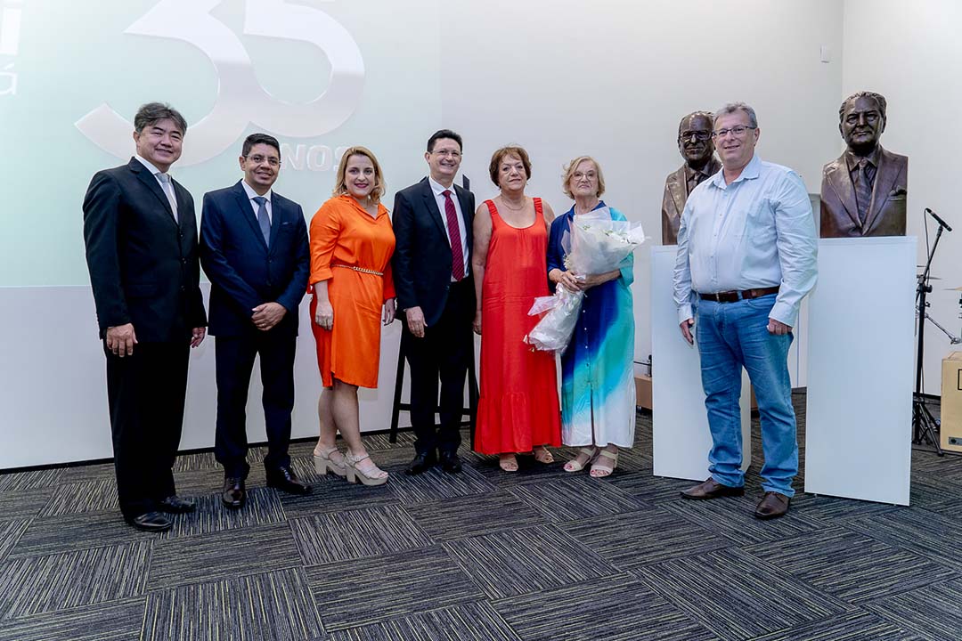 Além disso, a cerimônia incluiu o descerramento dos bustos dos fundadores da cooperativa, Olivier Grendene e Pedro Paulo de Mello, uma homenagem póstuma que eterniza a memória e o legado desses importantes personagens na história da Sicredi Rio Paraná. Os bustos foram posicionados em local de destaque, servindo como inspiração para as futuras gerações de associados e colaboradores.