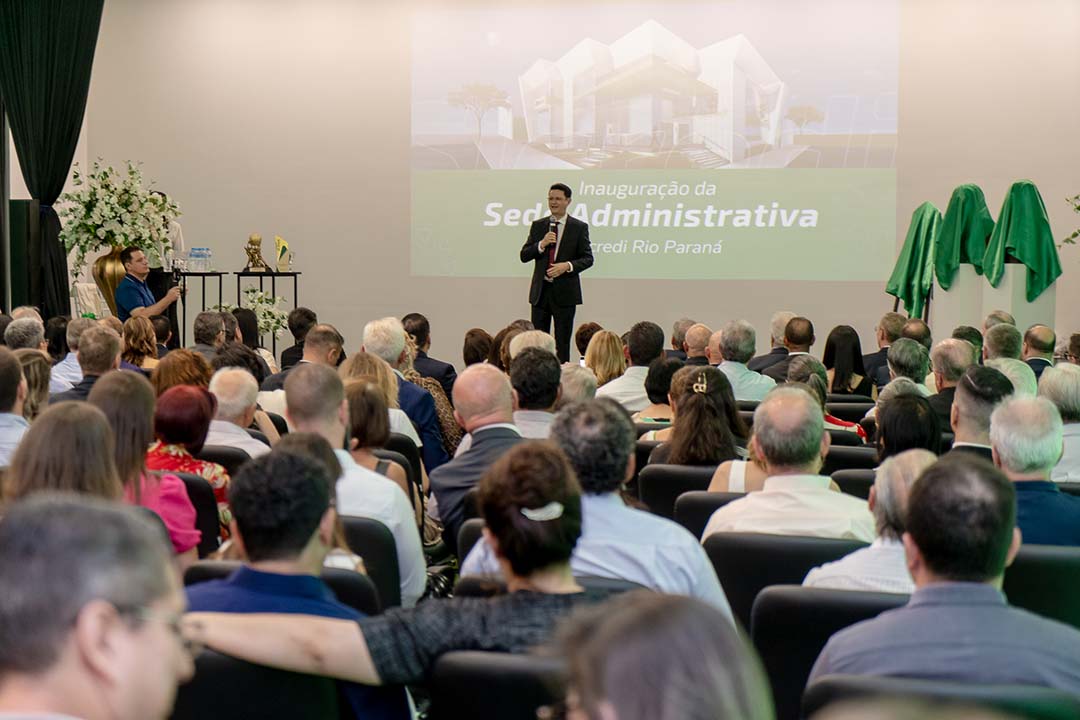 O descerramento da placa inaugural do prédio simbolizou o início de um novo capítulo para a Sicredi Rio Paraná. A placa foi revelada com a presença da presidência e diretoria no palco acompanhados do prefeito municipal, Otávio Grendene Bono.