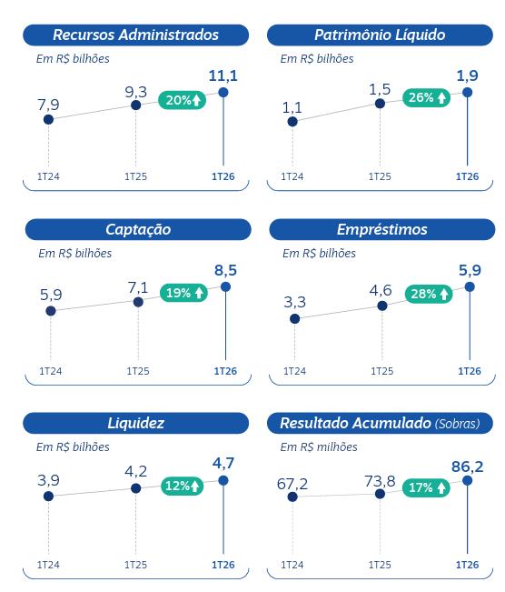 A captação total avançou 19%, e soma R$ 8,5 bilhões, enquanto o Patrimônio Líquido atingiu R$ 1,9 bilhão, o que reforça a estrutura de capital e a segurança da cooperativa.