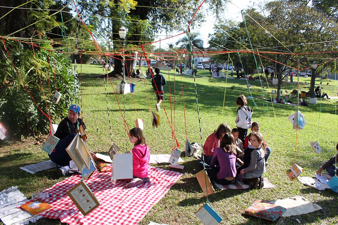 Durante os piqueniques, os pequenos e seus familiares têm acesso a leitura e contação de histórias, livros em árvores e tapetes, teatro e música ao vivo, artesanato, jogos, brincadeiras e trocas de livros.