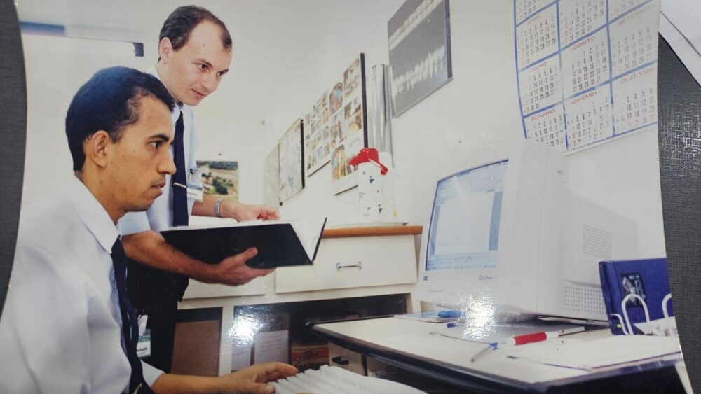 Leonildo informou à coluna que a foto foi tirada provavelmente entre 2000 e 2002, gestão do comerciante Luiz Fróes. Sobre o evento, acredita tratar-se de uma assembleia, já que tinha em mãos o livro de atas, enquanto Dorival digitava algo no computador. Aliás, como observou, o monitor (ainda de tubo) revela a tecnologia da época.