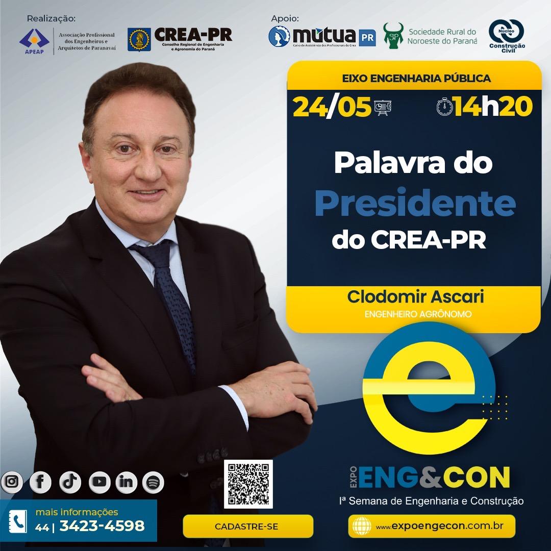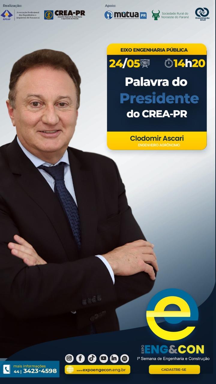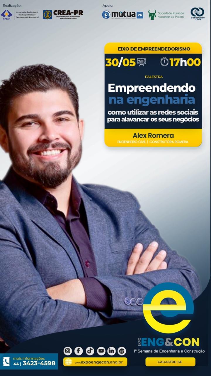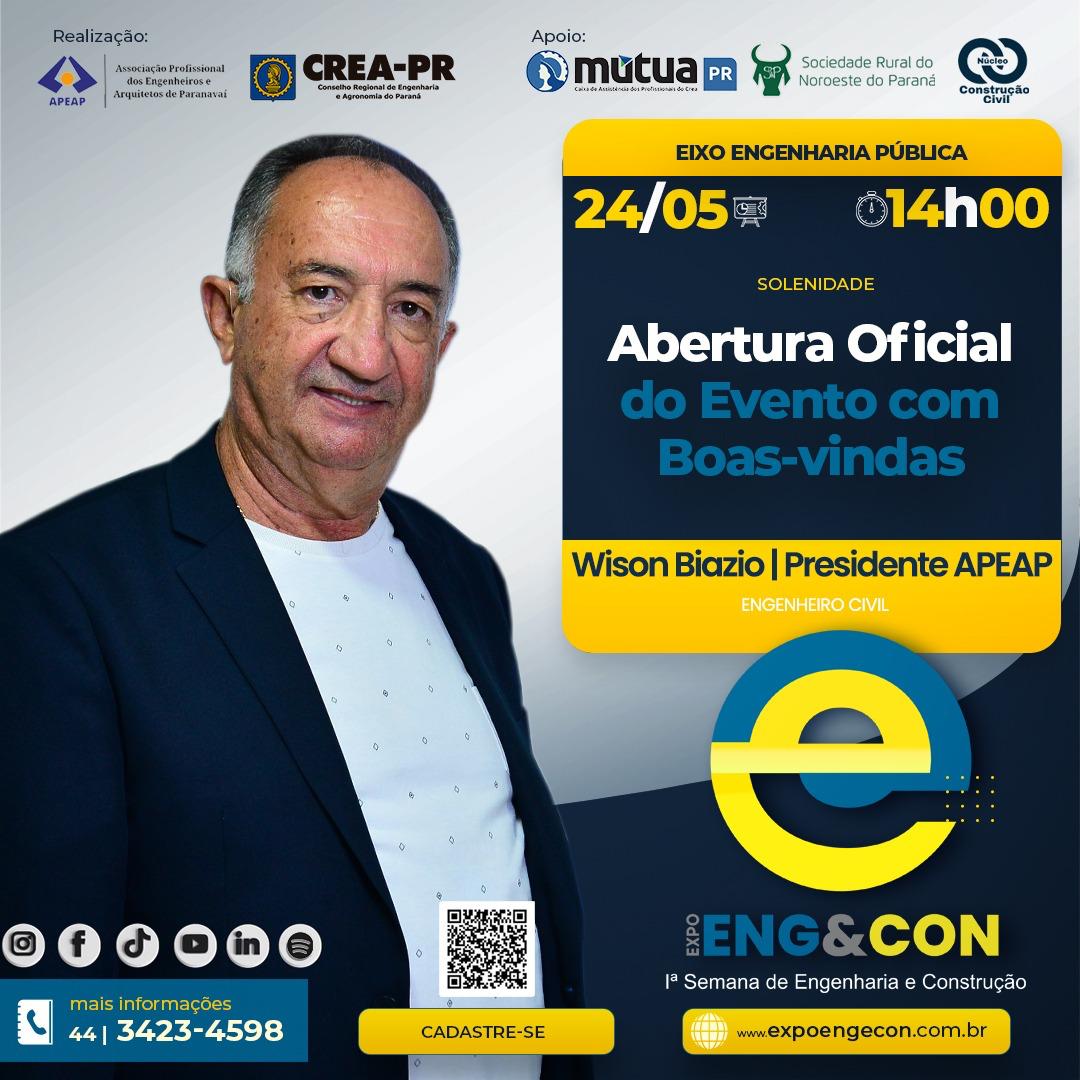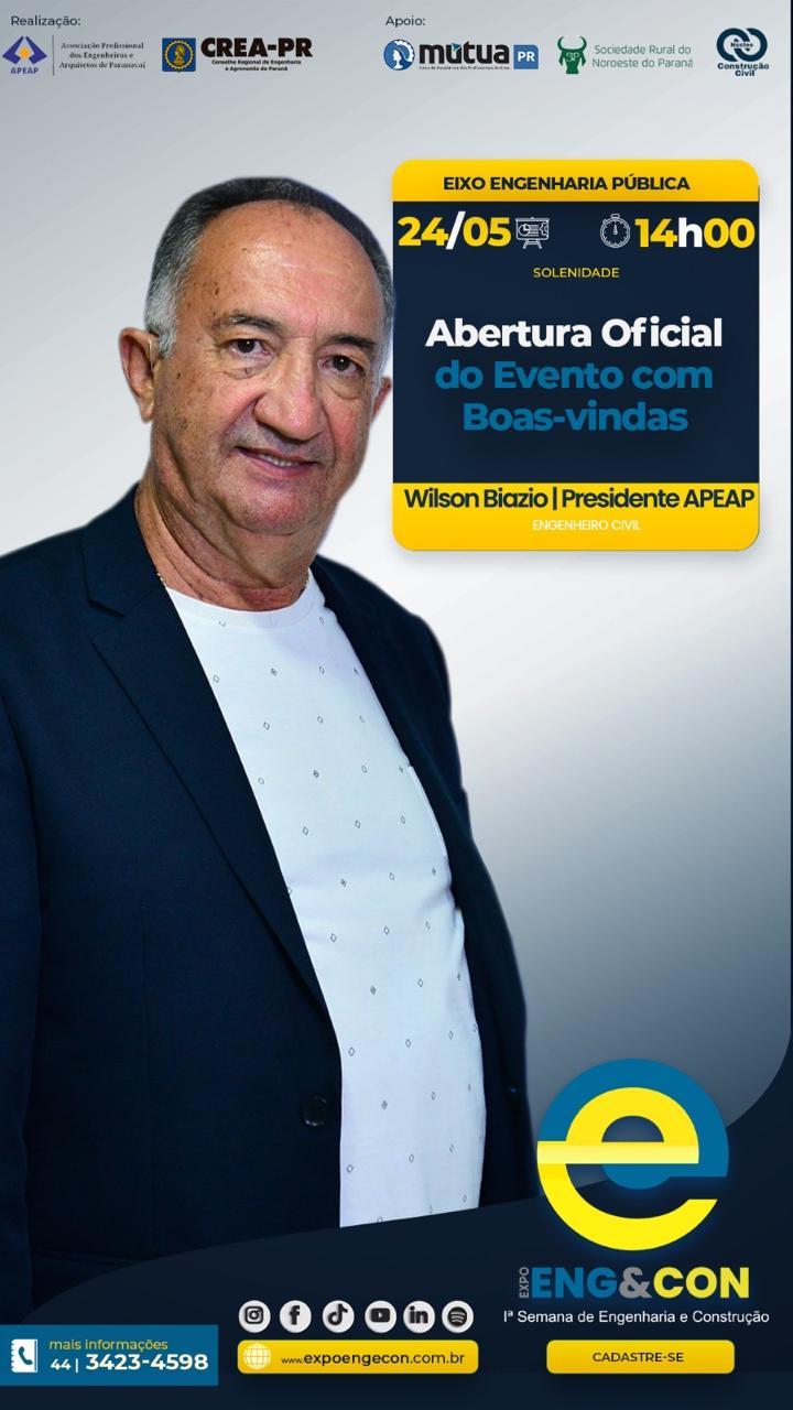 É com grande entusiasmo que convidamos você a participar da 1ª Semana de Engenharia e Construção da APEAP, a Expo Eng&Con, um evento que promete revolucionar o panorama da construção civil e áreas afins em Paranavaí e arredores. Este evento técnico ocorrerá de 24 de maio a 02 de junho de 2024, no Pavilhão da Indústria e do Comércio do Parque de Exposições de Paranavaí.