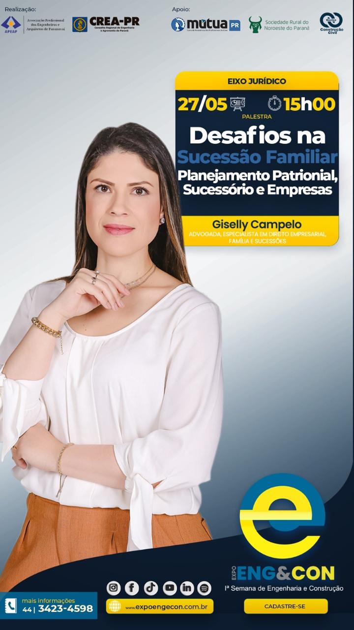 - Jurídico (27/05): Benefícios previdenciários aos profissionais liberais; Contratos para profissionais liberais; Desafios na sucessão familiar; Leilões Judiciais; Relação de Trabalho na construção civil; Sucessão Familiar e Holding.