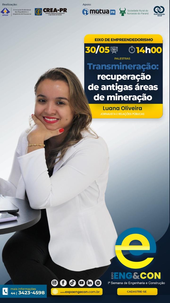 - Empreendedorismo (30/05): Projetos Comerciais; Transmineração: Recuperação de antigas áreas de mineração; Construções de alto padrão; Posicionamento de Marcas (Branding); Empreendendo na engenharia; O impacto da arquitetura na experiência e fidelização do seu cliente.